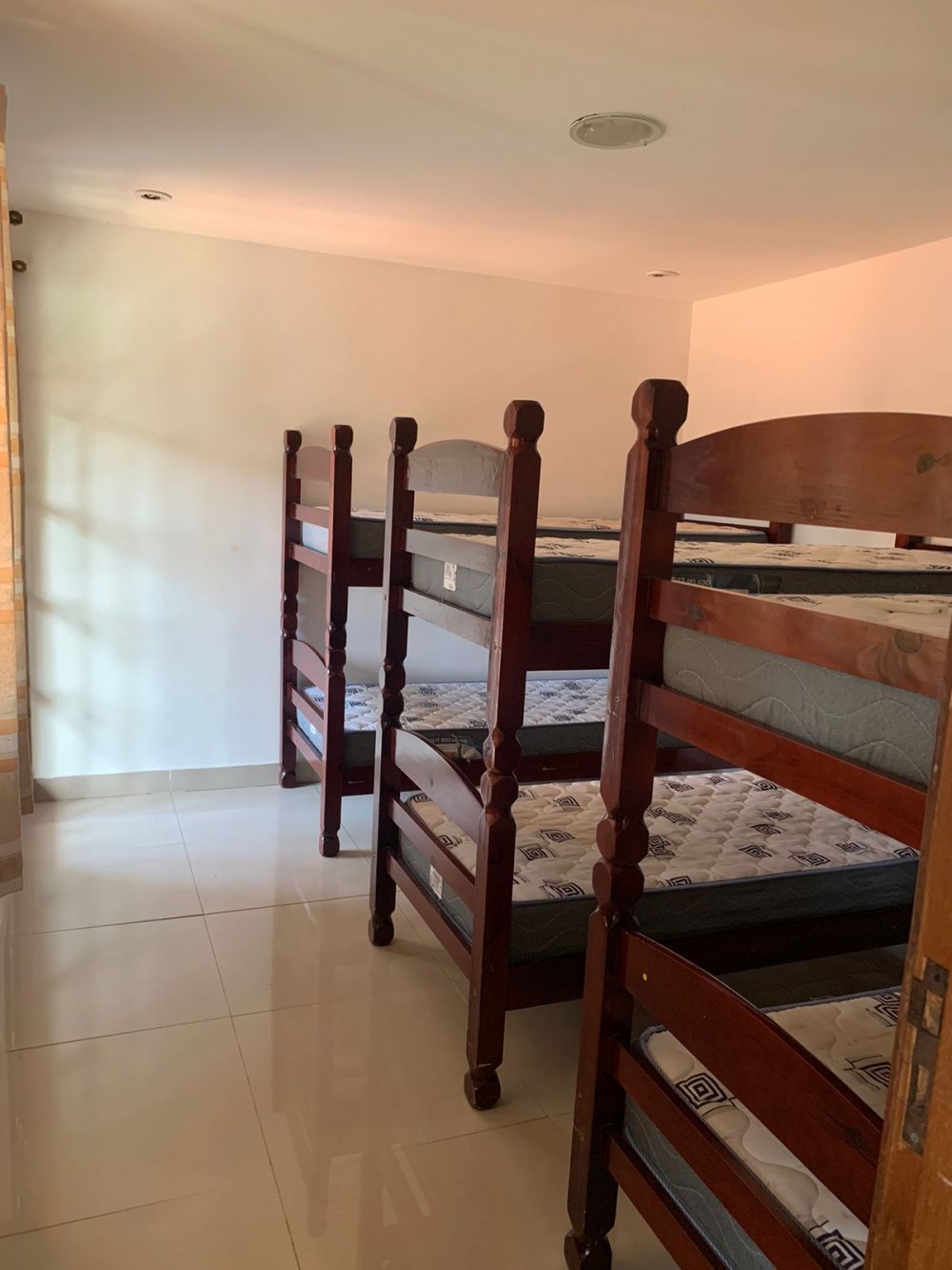 A casa comporta ate 23 hospedes todos em camas, e  mais uns 3 em colchoes extras no chão, totalizando até  26 pessoas, acima de 16 pessoas cobramos um adicional por hospede extra de $150,00 ao dia pago diretamente ao proprietário.