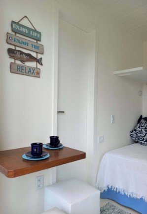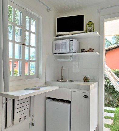 3. Copa bancada com cuba, microondas, frigobar e utensílios;