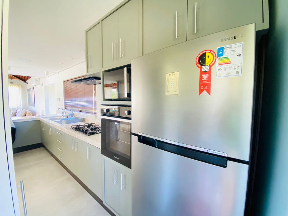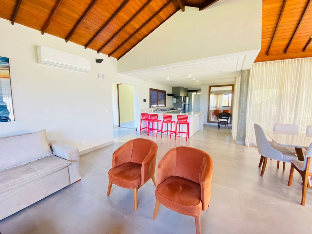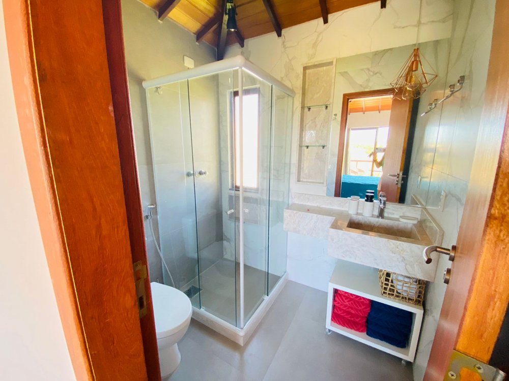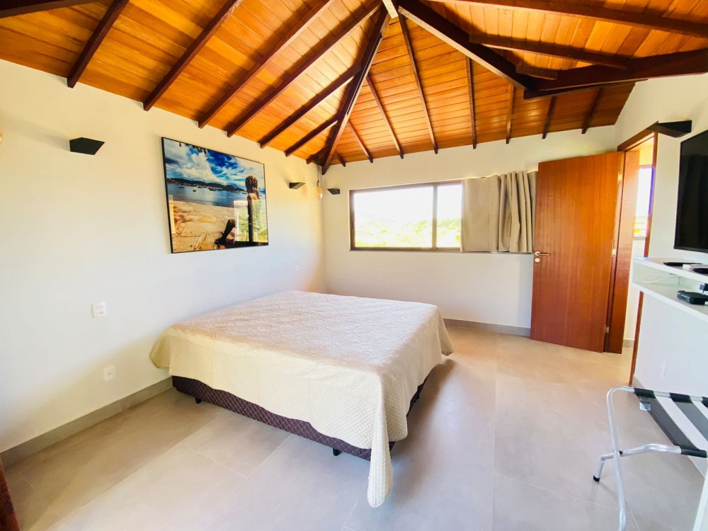 Casa independente, novíssima a poucos metros da Rua das Pedras, com piscina e churrasqueira privativas, lavanderia, chuveirão e banheiro externo . Casa em dois pavimento sendo o superior com duas suítes, todas climatizadas com ar condicionado, smart tv 50", enxoval completo e varandas. No piso inferior temos uma suíte completa também, lavabo, jardim de inverno , sala de tv de 70 " e cozinha em conceito aberto. toda equipada com filtro, microondas, geladeira, cafeteira e tudo para cozinhar .