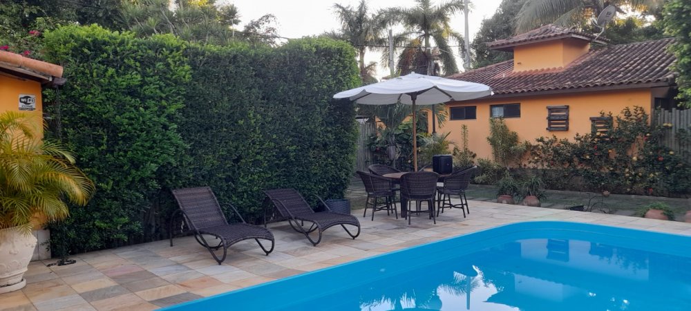 Casa térrea em ótimo padrão de acabamento, totalmente mobiliada e decorada, a poucos metros da praia de Geribá e dos principais comércio do bairro. 6 quartos, sendo 3 suítes térreas e dois quartos no segundo andar do anexo, todos com ar condicionado e ventiladores de teto. Duas cozinhas completas, sendo uma na area gourmet. Sala de tv ampla, lavanderia e piscina . Ótima localização. Leve toda a família a este lugar maravilhoso com muito espaço para curtir da melhor forma suas férias em Búzios.