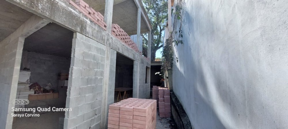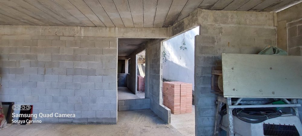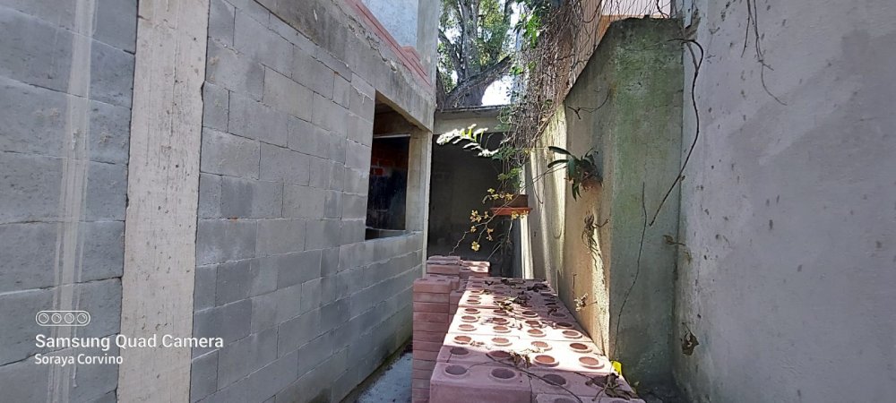 Casa aos fundos a ser finalizada, com piso térreo de 60m² e piso superior com 35m² aproximadamente já com lajes e telhado construído, precisando fechar as paredes do piso superior.