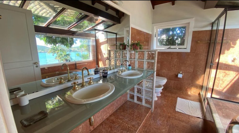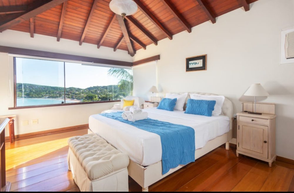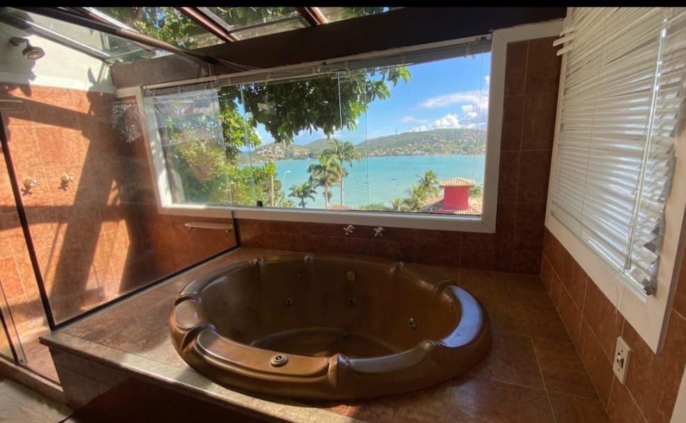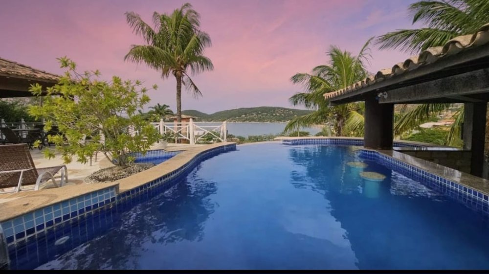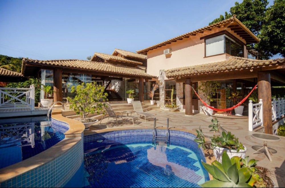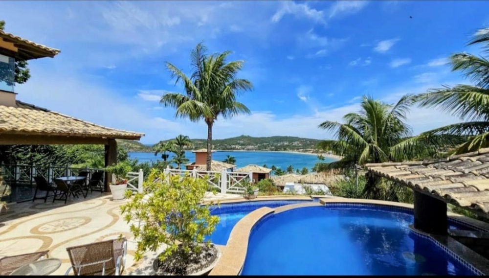 Mansão independente a 150 metros da praia da Ferradura, uma das mais exclusivas praias de Buzios. A casa tem 5 suites; 4 internas (1 Master com hidromassagem), todas com A.C, cama de casal e armarios embutidos, e uma externa con A.C, e cama de casal. 7 banheiros; ampla cozinha planejada e bem equipada. 2 salas de estar, 1 sala de jantar, 1 sala TV, varanda. Ampla churrasqueira, duas piscinas uma com bar molhado, estacionamento coberto.