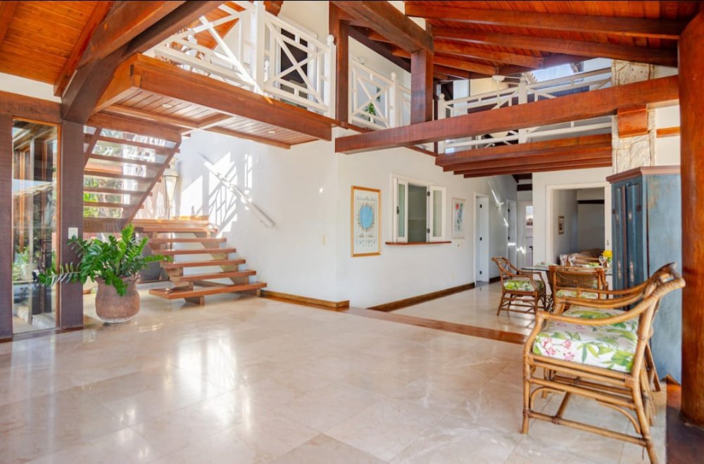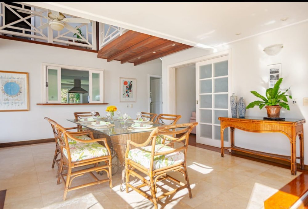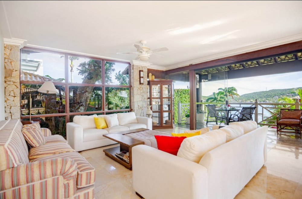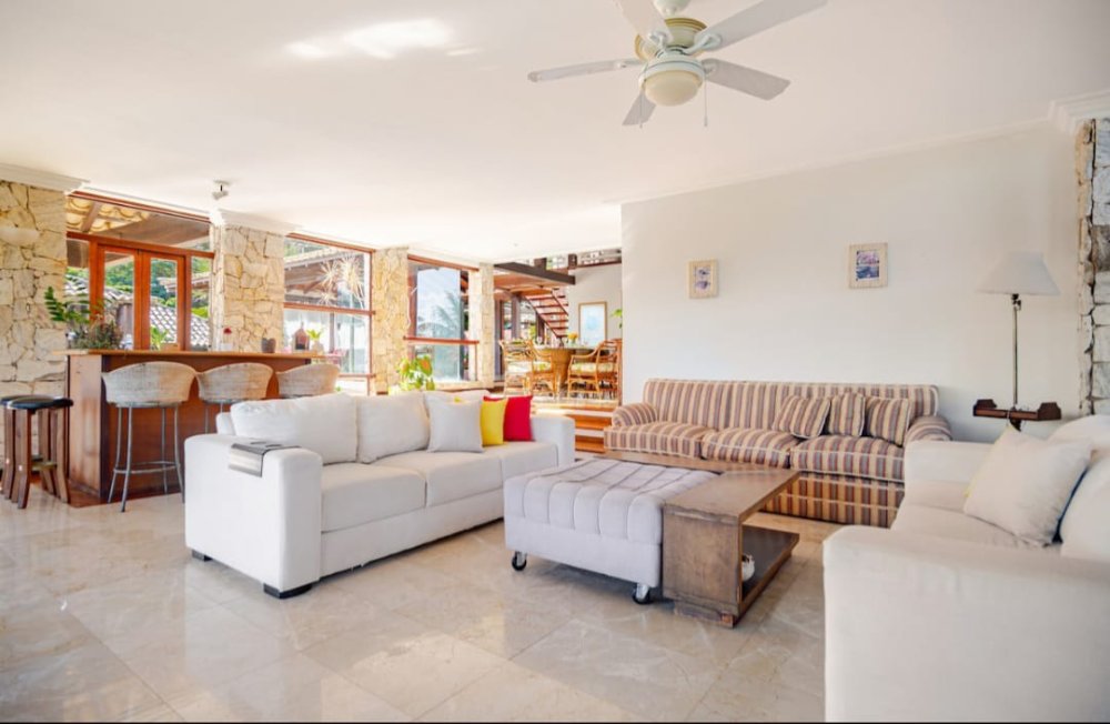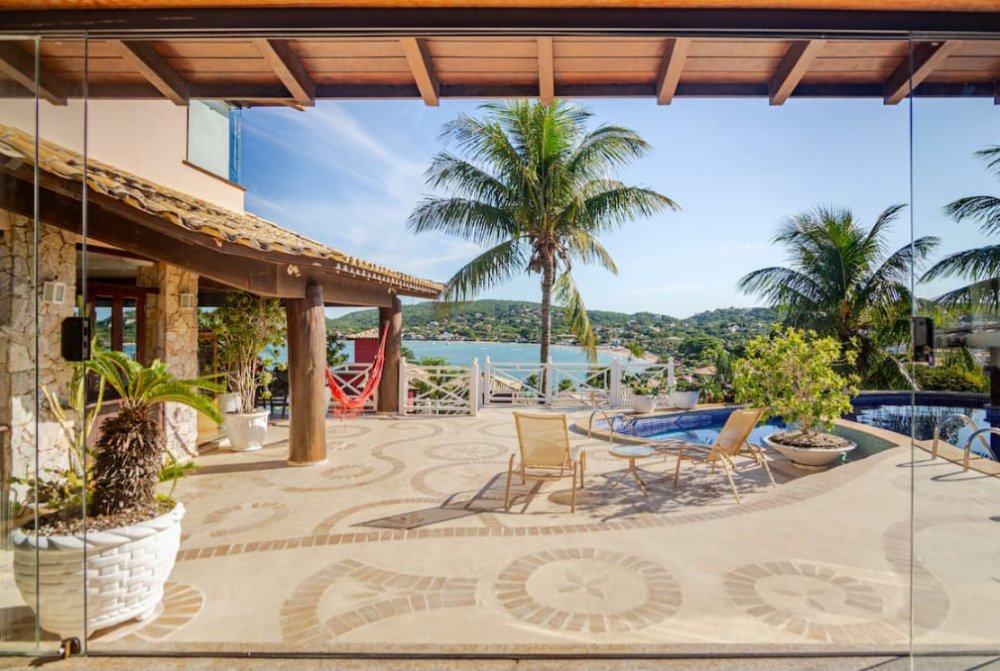 Mansão independente a 150 metros da praia da Ferradura, uma das mais exclusivas praias de Buzios. A casa tem 5 suites; 4 internas (1 Master com hidromassagem), todas com A.C, cama de casal e armarios embutidos, e uma externa con A.C, e cama de casal. 7 banheiros; ampla cozinha planejada e bem equipada. 2 salas de estar, 1 sala de jantar, 1 sala TV, varanda. Ampla churrasqueira, duas piscinas uma com bar molhado, estacionamento coberto.