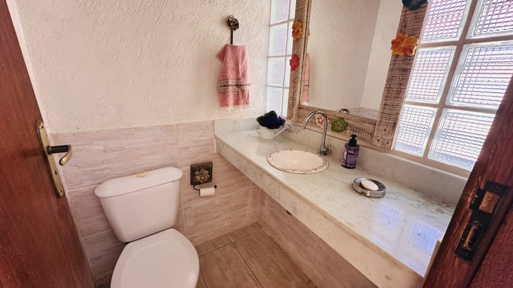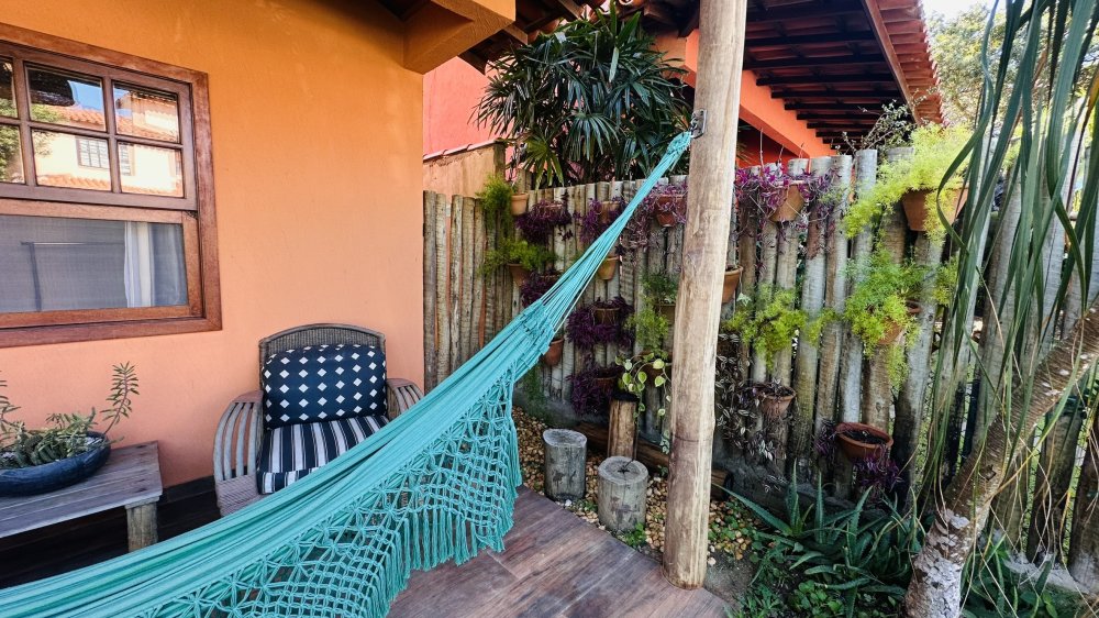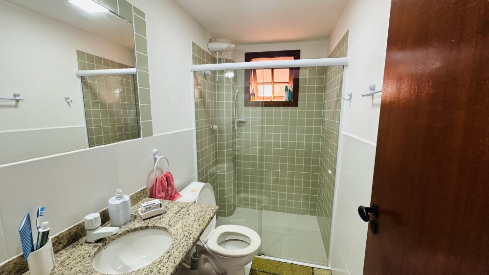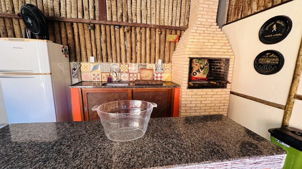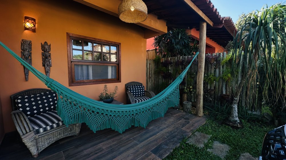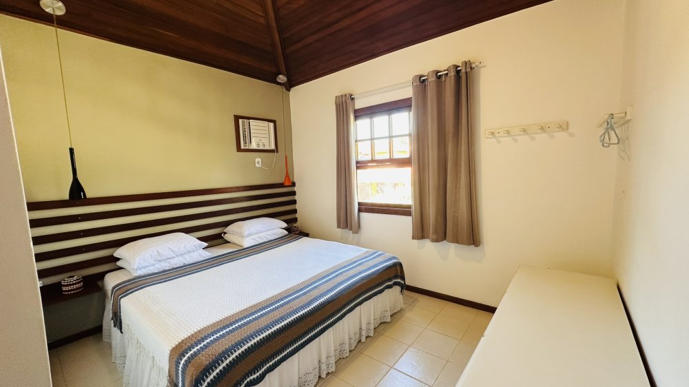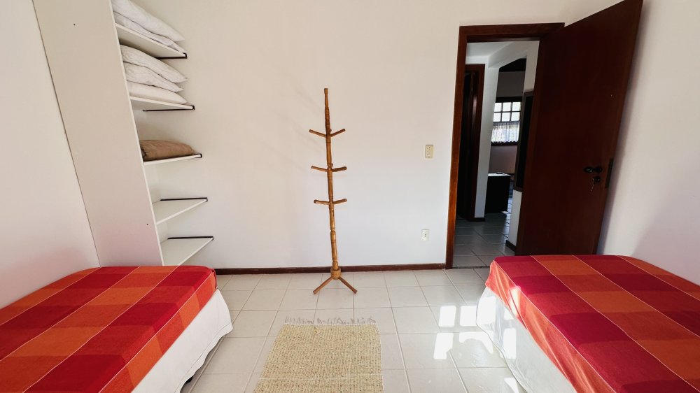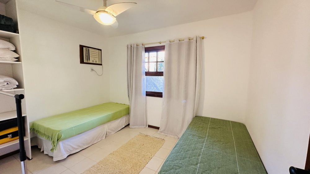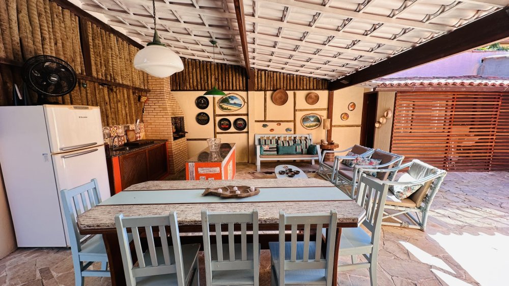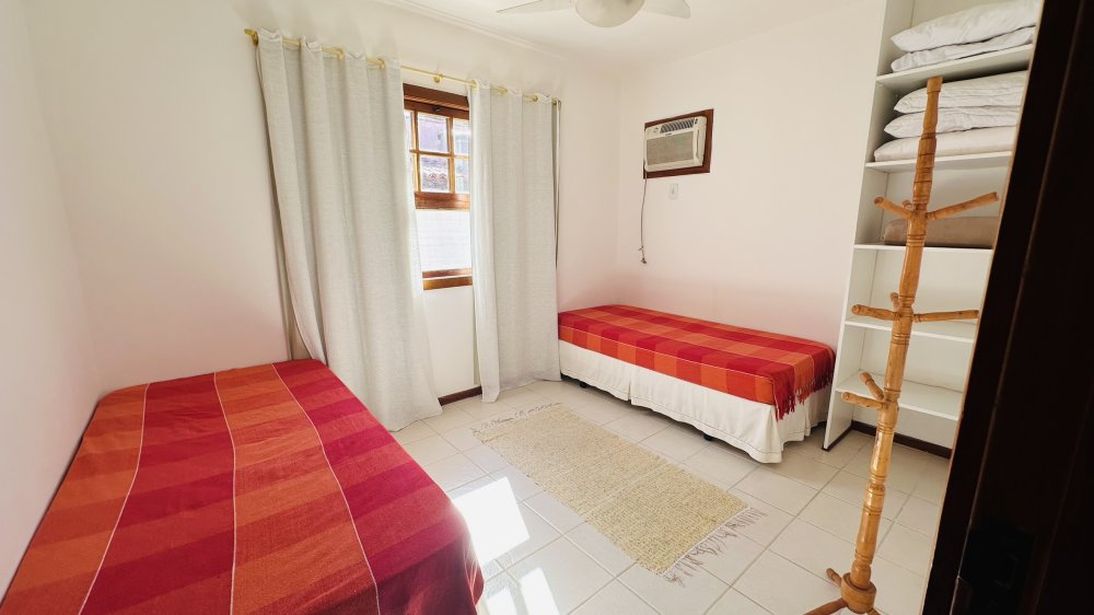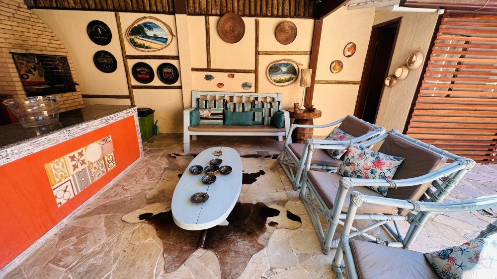 Casa praiana completamente mobiliada, com churrasqueira, chuveirão, mesas, sofa e lavabo na parte de trás. Condominio fechado e seguro. Imovel com  dois andares, sendo no andar de cima a suite principal e no de baixo dois quartos com duas bicamas cada um que podem ser organizadas como na foto ou organizar em 2 camas de casal. Cozinha completa com sala e varanda na frente da casa.