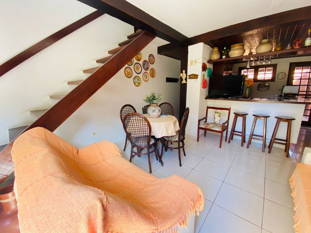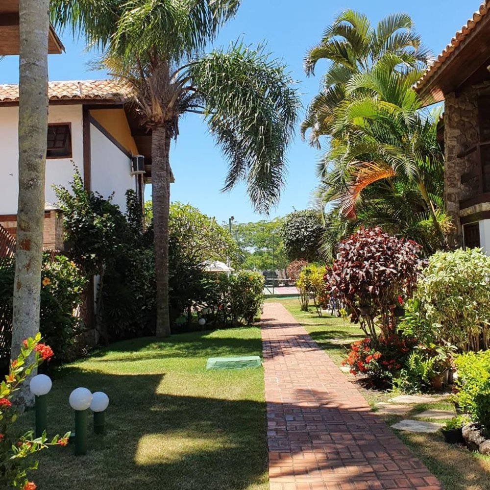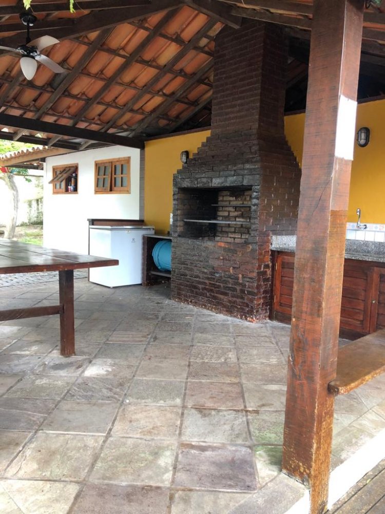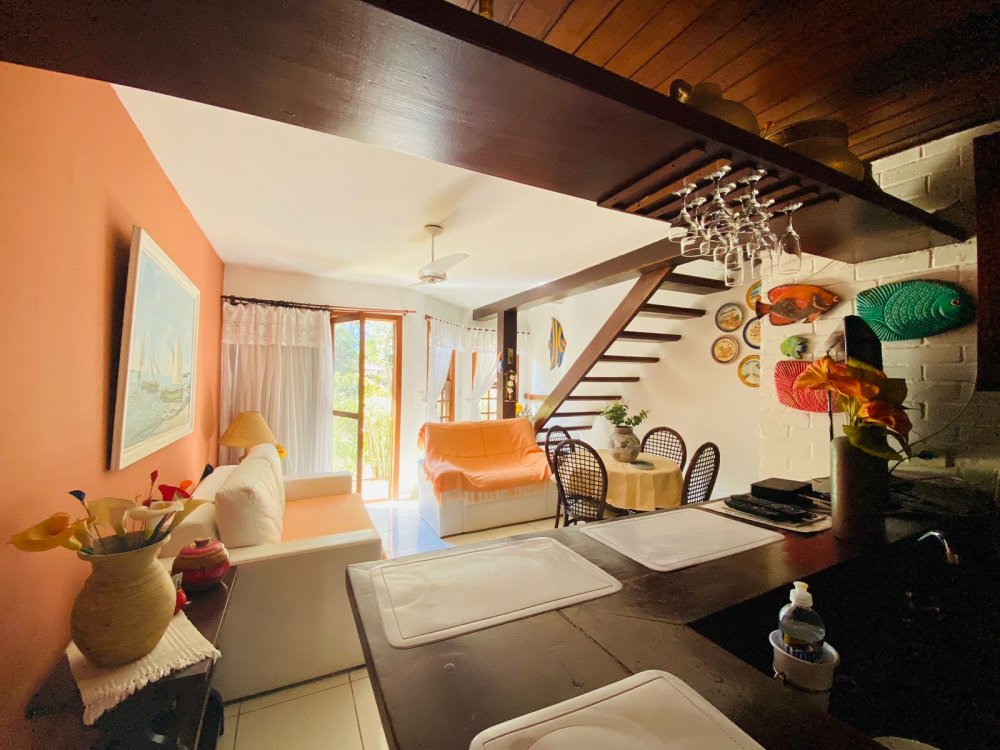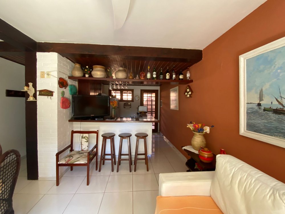 Agradável casa de dois pavimentos .sendo no andar superior uma suíte com cama de casal e um quarto com 4 camas de solteiro (1 Beliche) .A casa recebe ate 6 pessoas em um condomínio agradável, arborizado, com ampla área de lazer, sala de jogos, parquinho, quadra de tenis, restaurante, sauna e garagem para 1 carro. Aqui você estará perto dos principais comércios de Manguinhos, como Extra, bancos, pizzarias, lojas e Porto do barra, onde pode ver o por do sol caminhado pela praia em 10/15 minutos