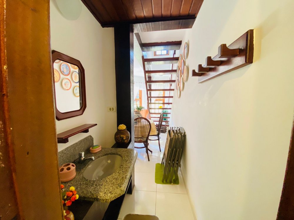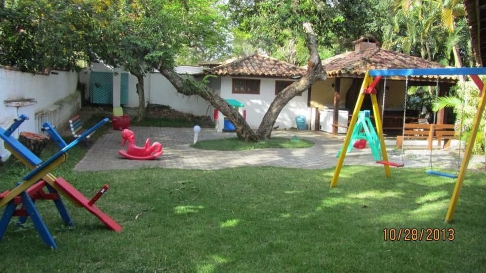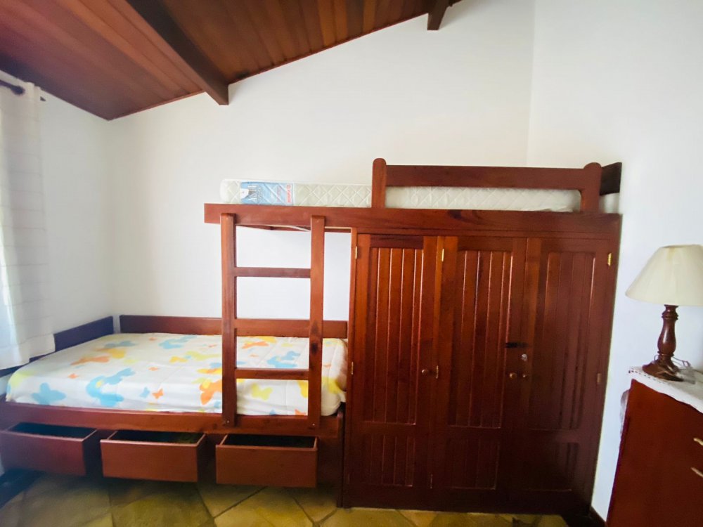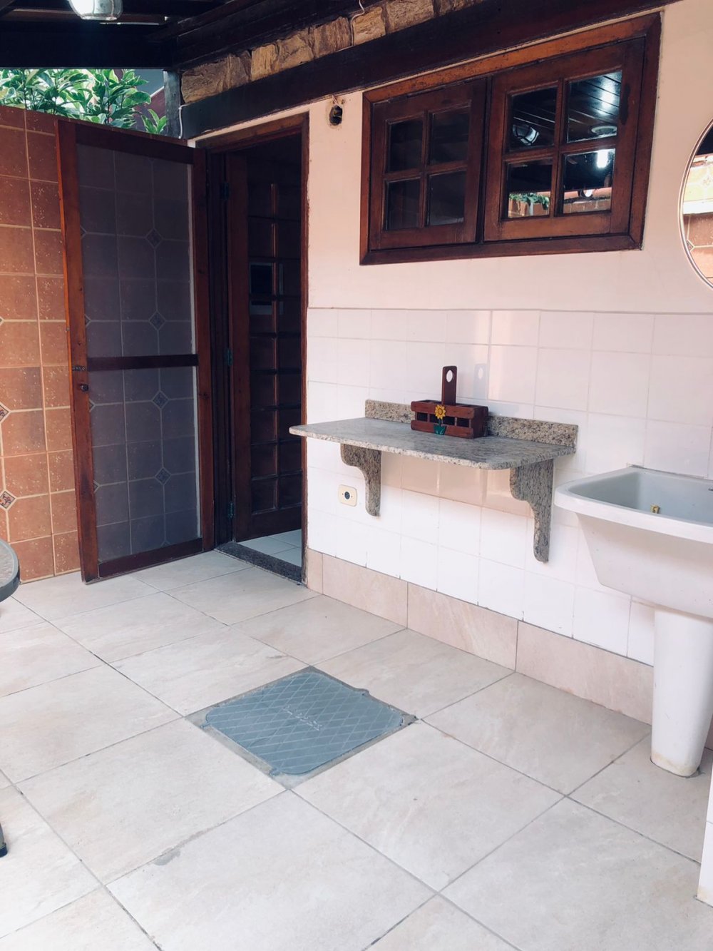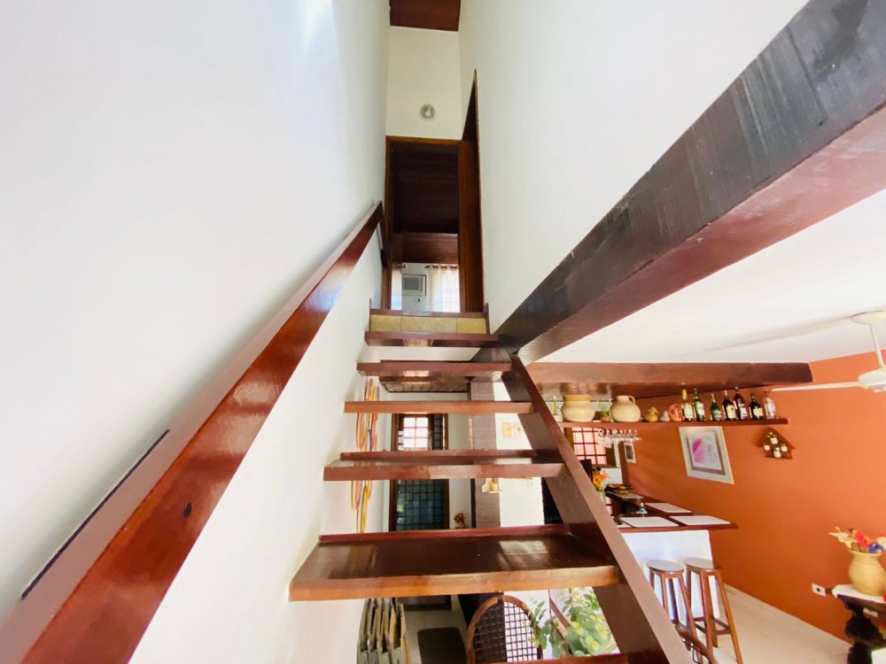 Agradável casa de dois pavimentos .sendo no andar superior uma suíte com cama de casal e um quarto com 4 camas de solteiro (1 Beliche) .A casa recebe ate 6 pessoas em um condomínio agradável, arborizado, com ampla área de lazer, sala de jogos, parquinho, quadra de tenis, restaurante, sauna e garagem para 1 carro. Aqui você estará perto dos principais comércios de Manguinhos, como Extra, bancos, pizzarias, lojas e Porto do barra, onde pode ver o por do sol caminhado pela praia em 10/15 minutos