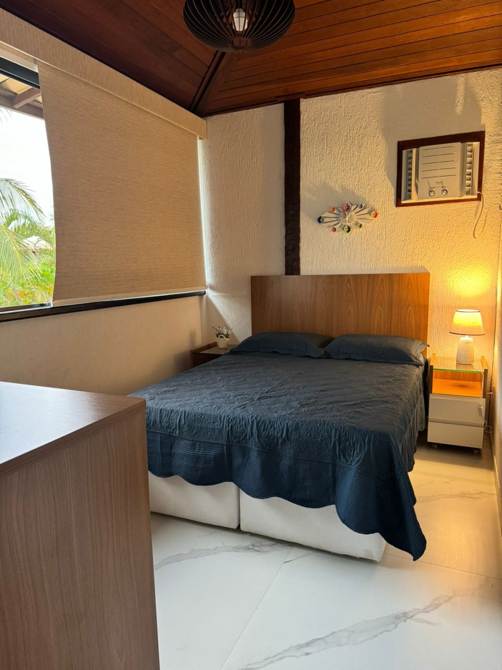 Deliciosa casa no pavimento superior com 3 quartos, sendo uma suíte, cozinha completamente equipada, churrasqueira elétrica portátil e localizada de frente para a piscina. Condomínio completo com piscina, sauna, serviço de quarto e portaria 24h, a apenas 800 metros da praia de Geribá e próximo aos principais comércios, como a padaria Duo Market. Acomoda até 5 hóspedes;