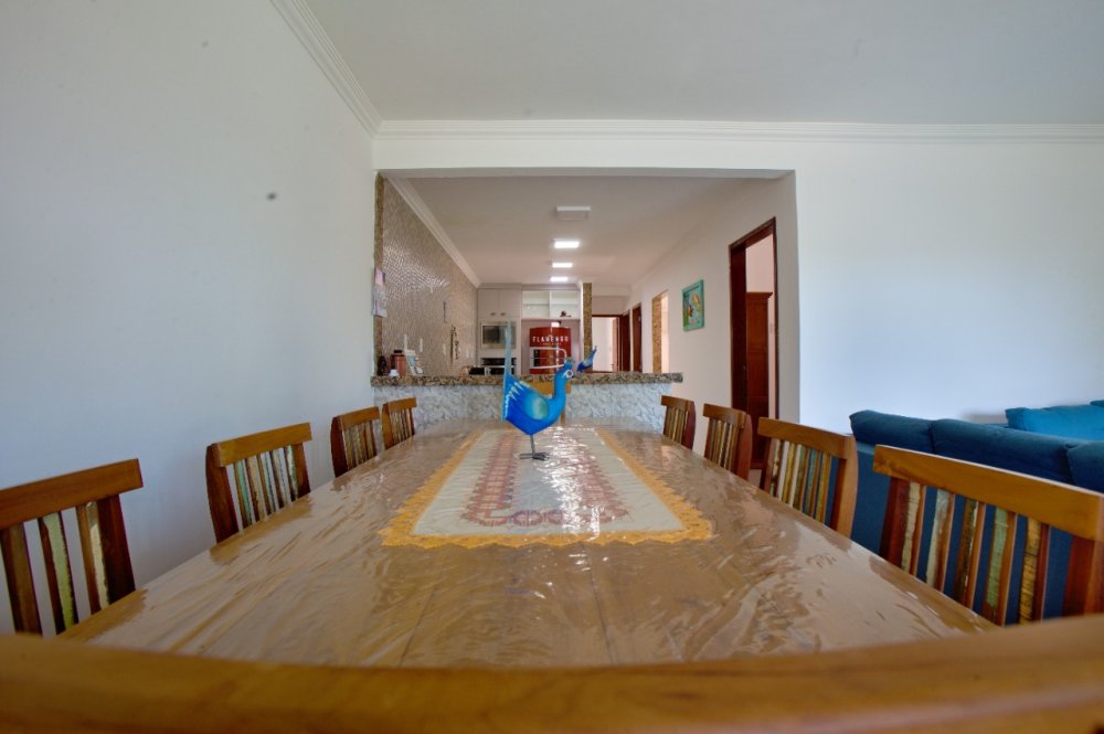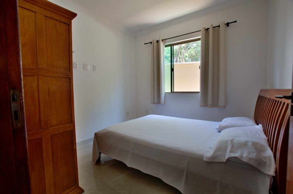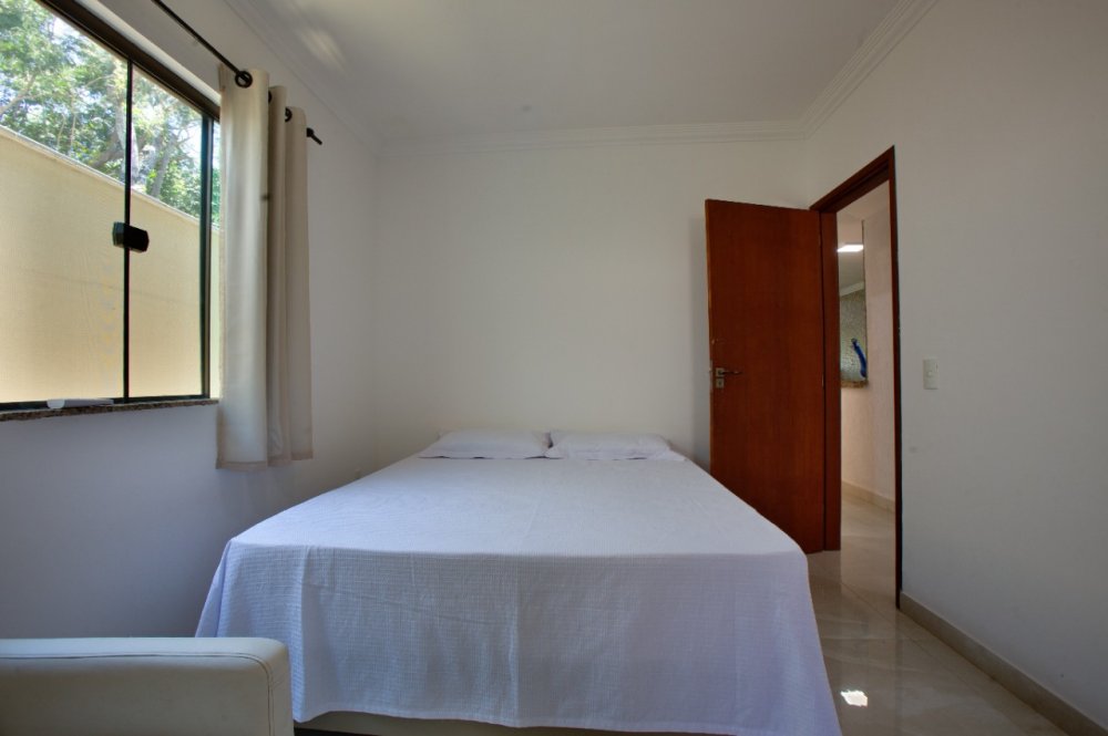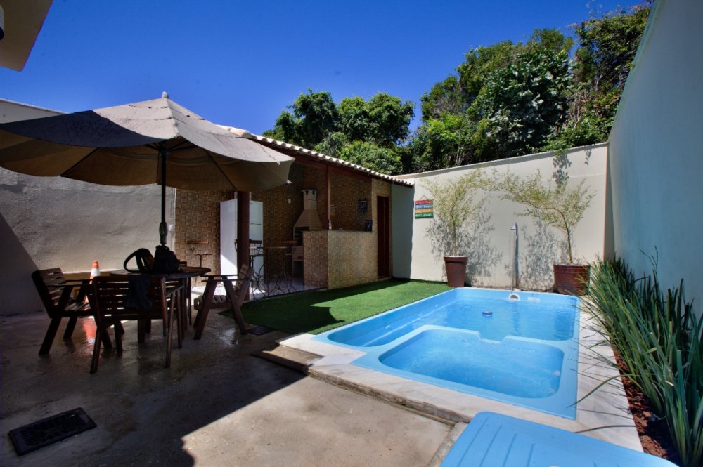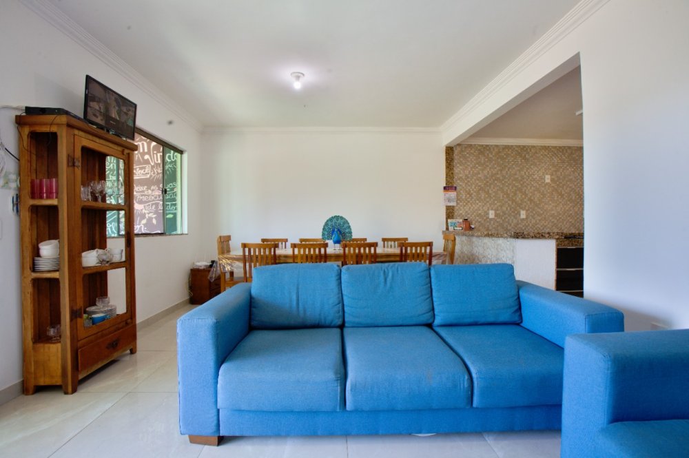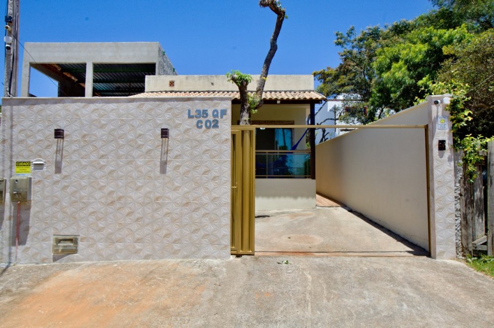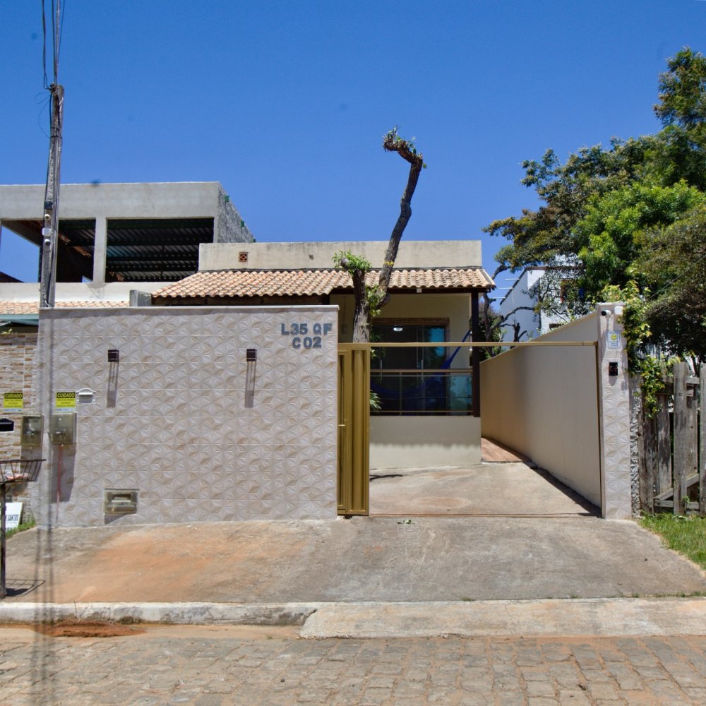 Casa térrea composta de 03 quartos, sendo 01 suíte com ar condicionado e cama King e um sofá cama. No quarto social 01 temos uma cama de casal e 01 pequeno guarda roupa e ar condicionado. No quarto social dos fundos temos 02 camas de solteiro e 02 colchões solteiro, com ar condicionado A casa tbm possui um banheiro social