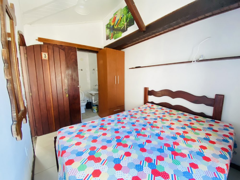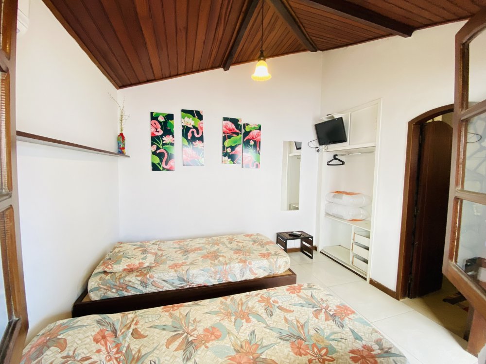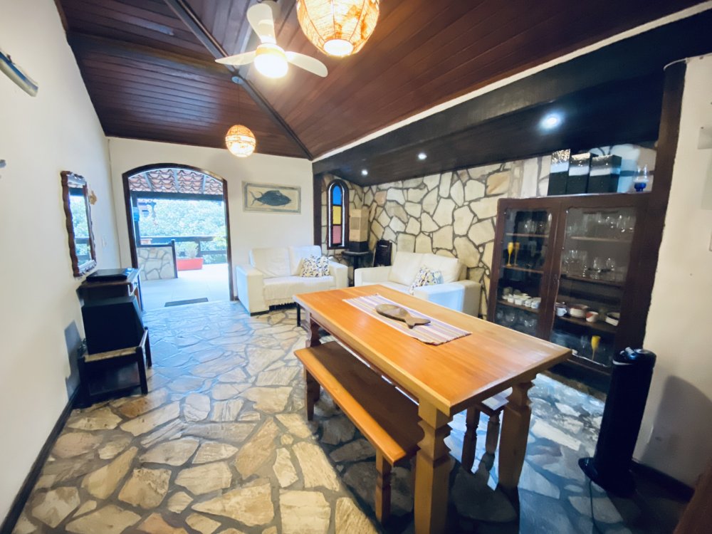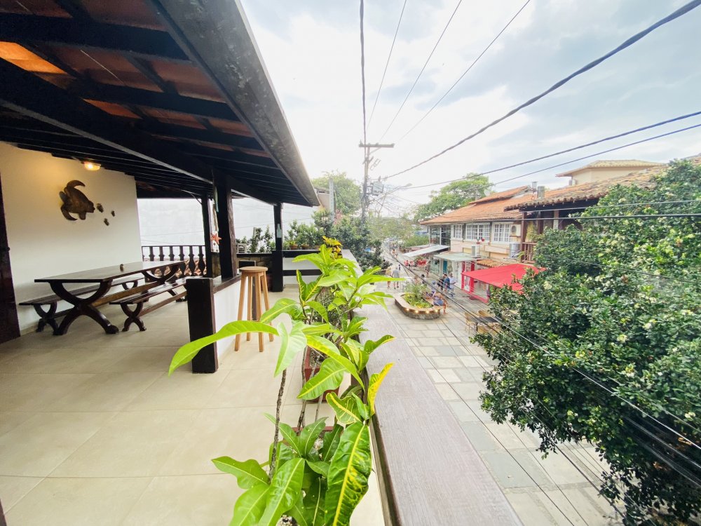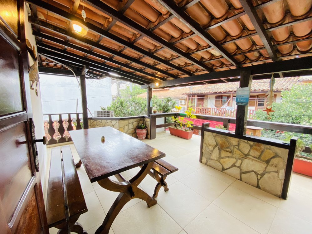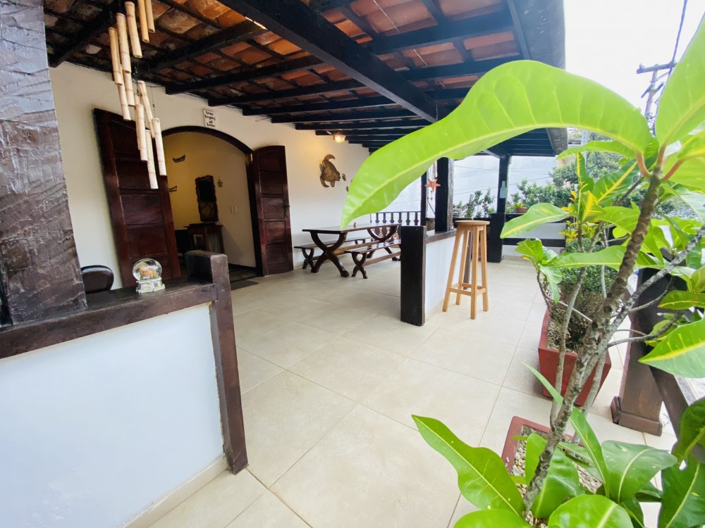A casa possui ampla varanda com vista para a Rua das Pedras e a Praça Santos Dumont, uma área de lazer nos fundos com churrasqueira, piscina e chuveiro. São quatro suítes equipadas com Tv e ar condicionado, uma sala de estar com TV, dois sofás, cozinha toda equipada, quarto no mezanino, lavanderia coberta e um lavabo.