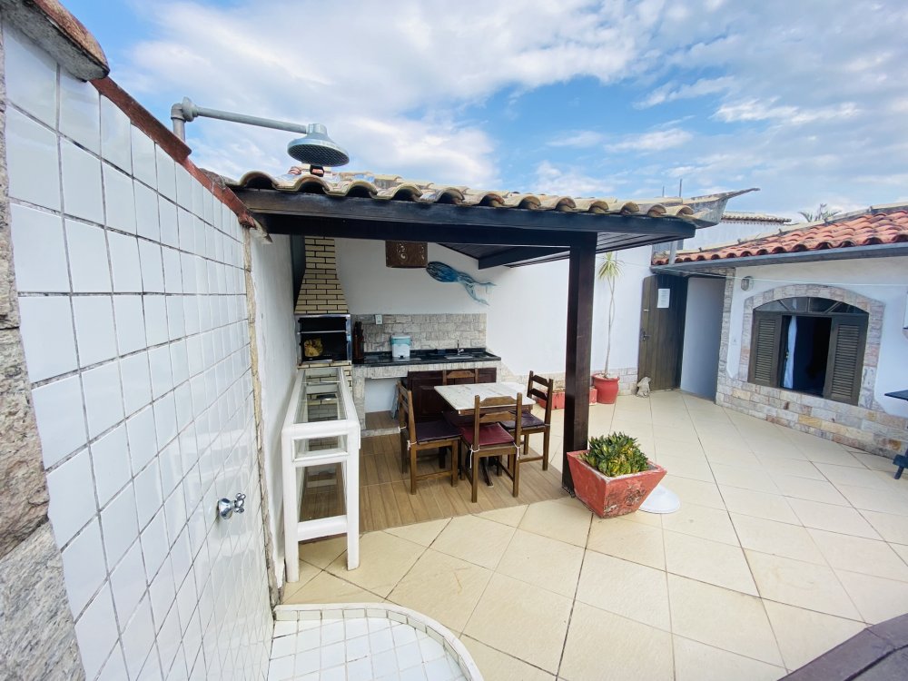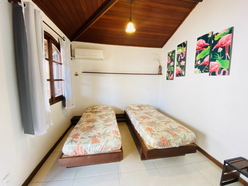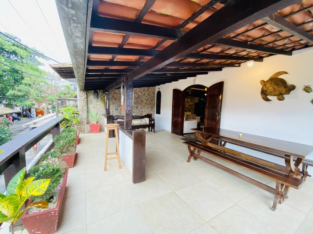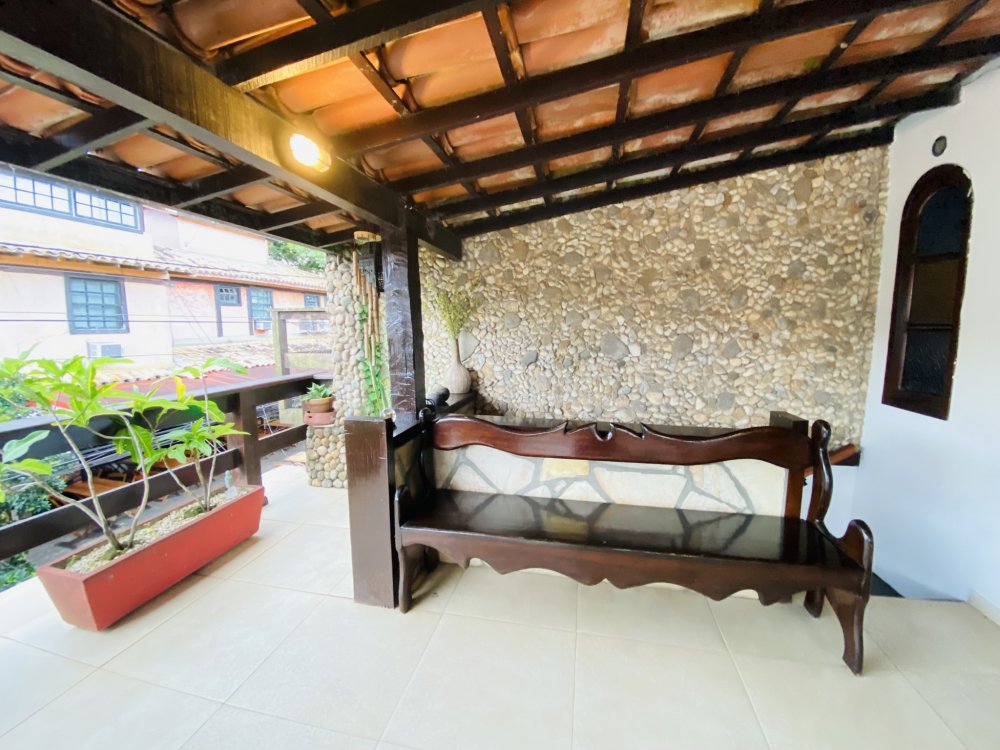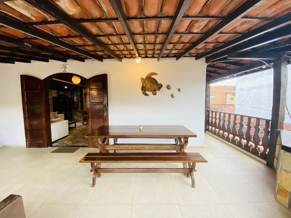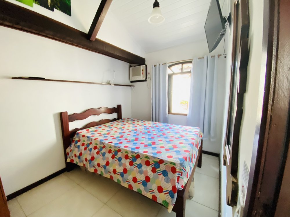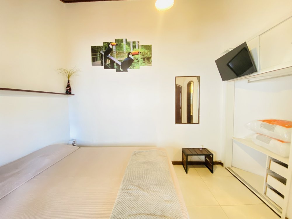 A casa possui ampla varanda com vista para a Rua das Pedras e a Praça Santos Dumont, uma área de lazer nos fundos com churrasqueira, piscina e chuveiro. São quatro suítes equipadas com Tv e ar condicionado, uma sala de estar com TV, dois sofás, cozinha toda equipada, quarto no mezanino, lavanderia coberta e um lavabo.