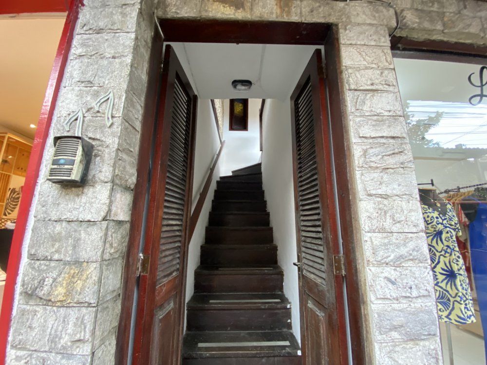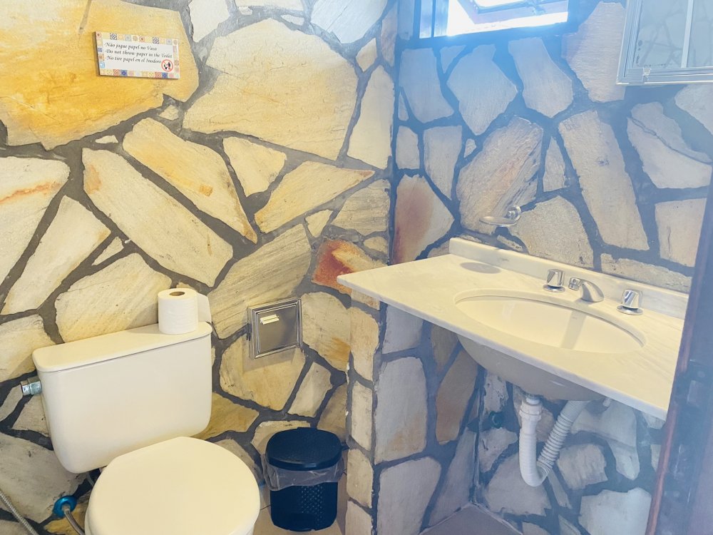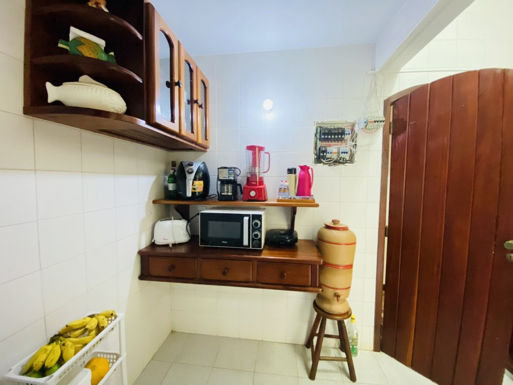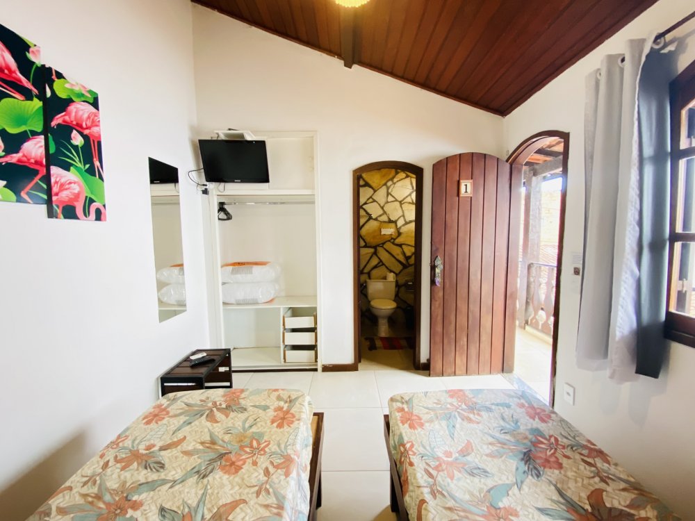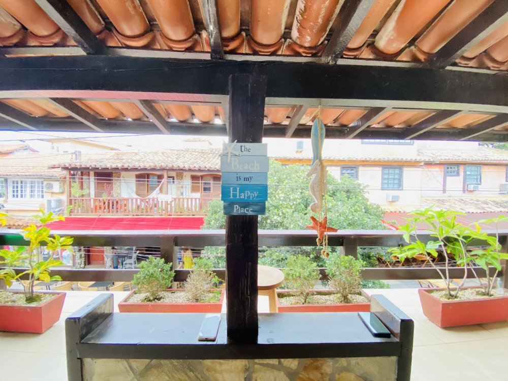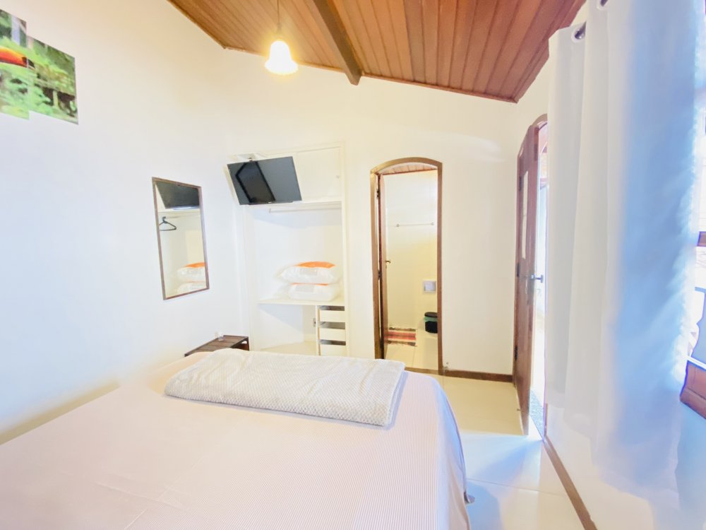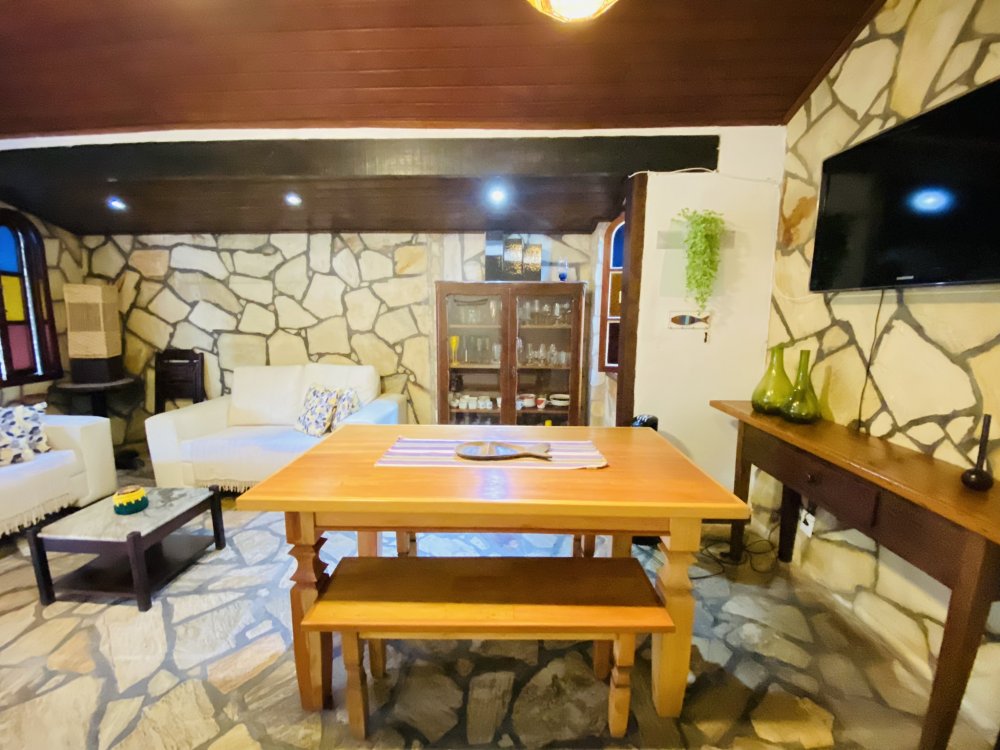 A casa possui ampla varanda com vista para a Rua das Pedras e a Praça Santos Dumont, uma área de lazer nos fundos com churrasqueira, piscina e chuveiro. São quatro suítes equipadas com Tv e ar condicionado, uma sala de estar com TV, dois sofás, cozinha toda equipada, quarto no mezanino, lavanderia coberta e um lavabo.