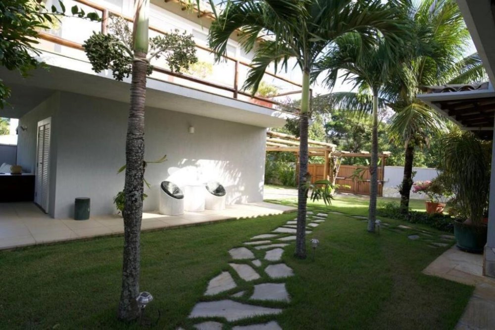 Amplo jardim gramado.