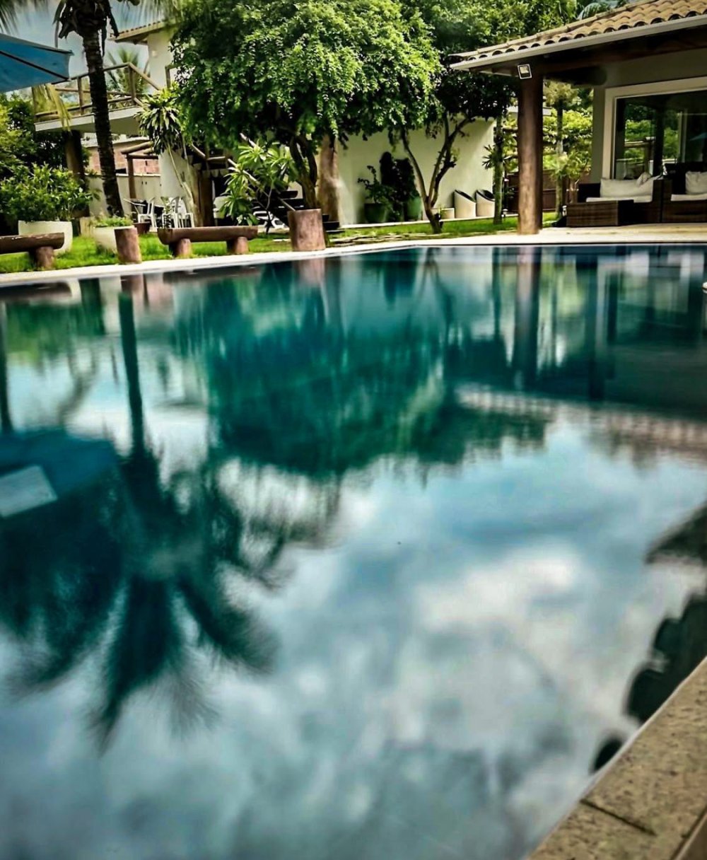 Casa moderna, com Wi-Fi, TV, piscina, área gourmet com churrasqueira, academia, jardim e estacionamento p/ 5 carros.