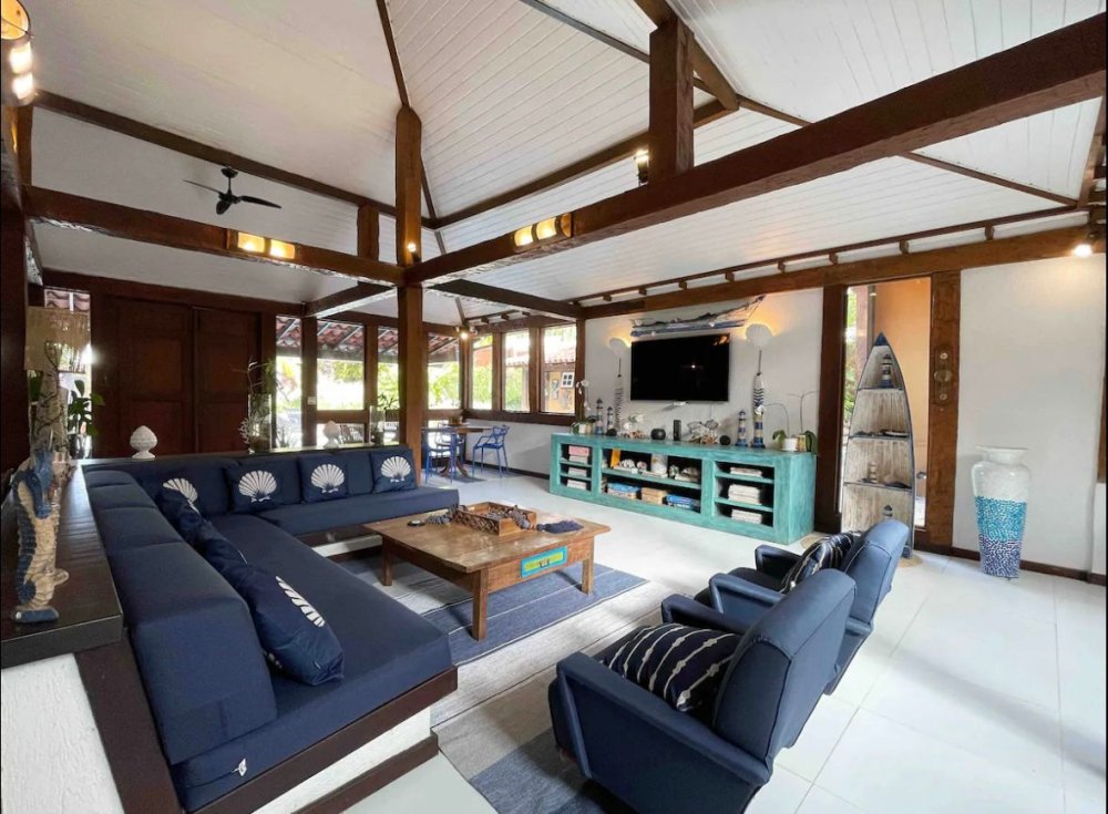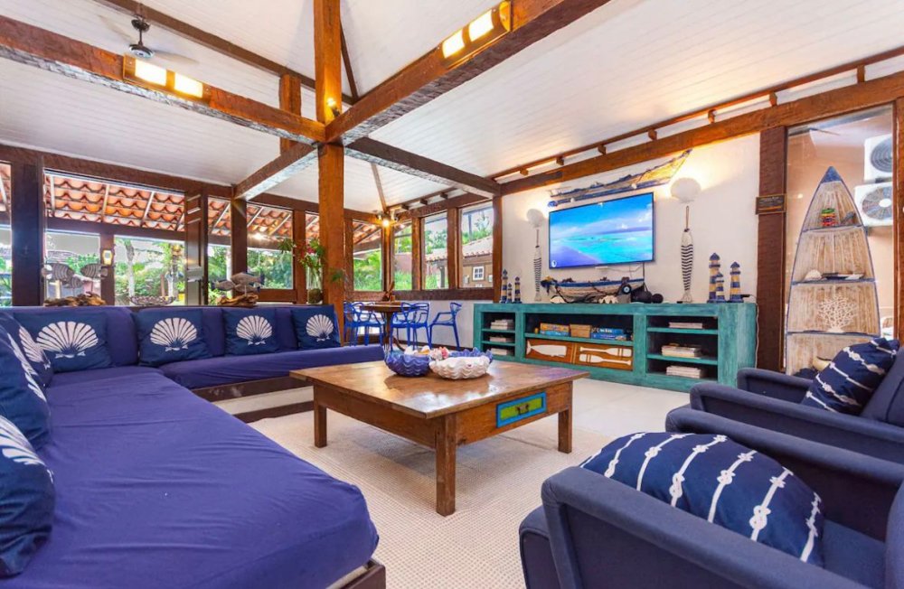 Casa a alguns passos da praia da Ferradura em Buzios - RJ, a casa fica na rua detrás da praia; muito espaçosa e completa; c piscina, churrasqueira, sauna, Hidro s/ aquecimento, varanda, espaço kids (pula pula p criança ), casa dárvore, linda fogueira de chão, ótimo jardim. Excelente casa com muito espaço para se divertir e curtir com a família e amigos.