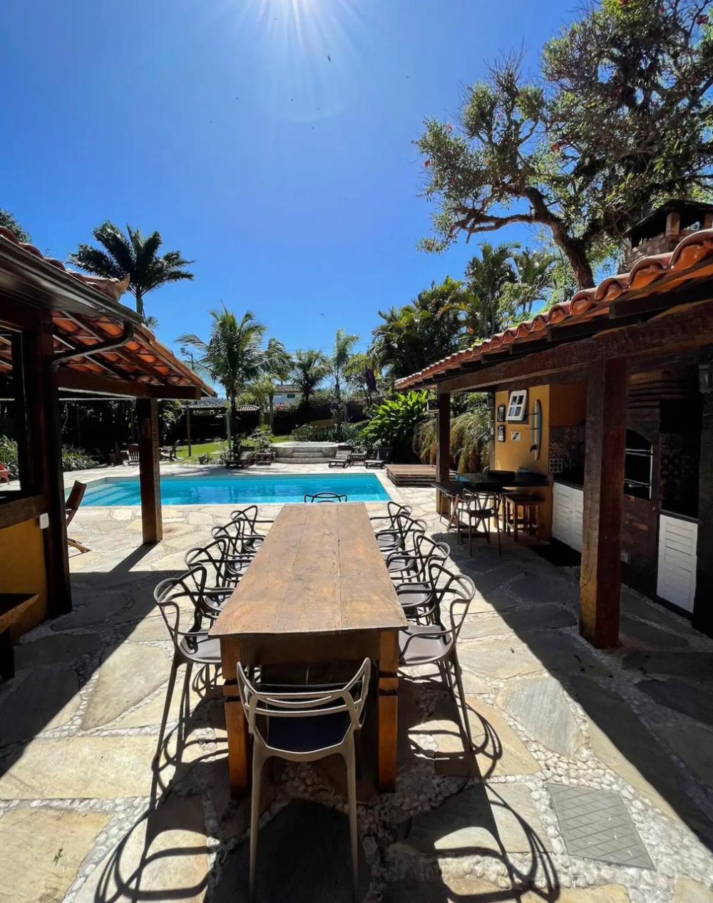 2- A casa somente e alugada com os caseiros presentes, que ficam responsáveis pela limpeza de piscina e manutenção de jardins. Porém eles ficam na casa de caseiro.