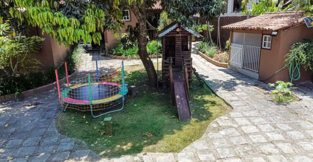 A casa tem uma excelente piscina e uma Hidro s/ aquecimento; chuveirão, sauna seca, churrasqueira, fogueira externa ou lareira exterior, quintal, pula pula para as crianças e casa da árvore para crianças, espaço para até 4 carros parados dentro da casa.