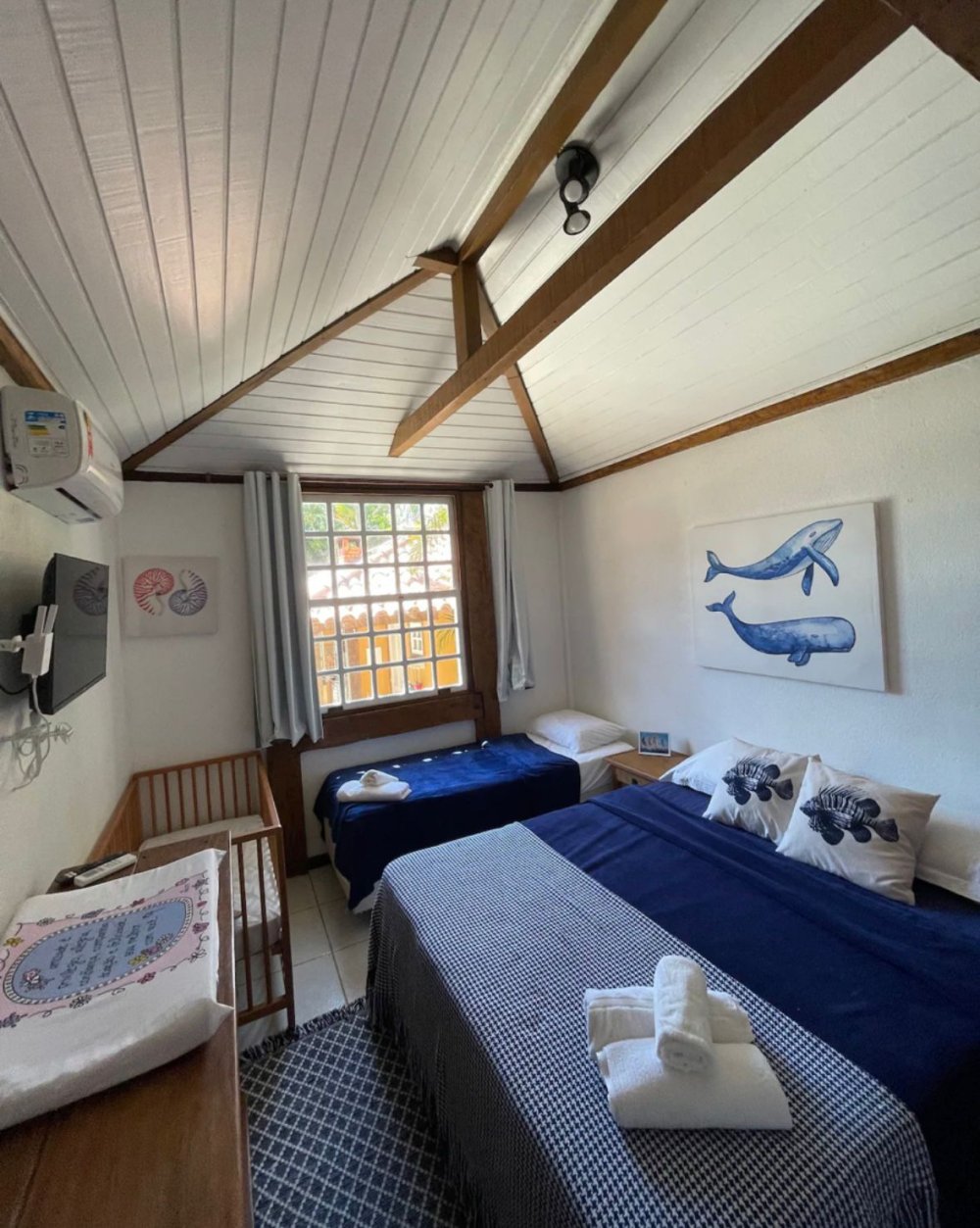 A casa acomoda até 15 pessoas no total : sendo 13 pessoas em camas ; 2 bebês em 2 berço .
