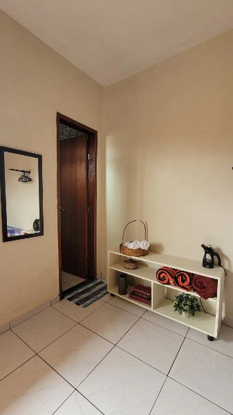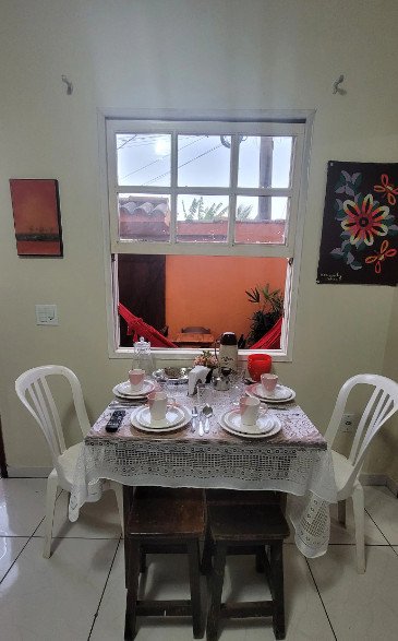 A casa é de entrada independente, ou seja, não terão outros hospédes entrando pelo mesmo portão. Possui área de lazer com churrasqueira e utensílios para churrasco para momentos de lazer. Possui 01 quarto com 1 cama de casal e 1 de solteiro, 1 banheiro, 1 sala com 1 bicama (para 02 pessoas) e cozinha equipada.