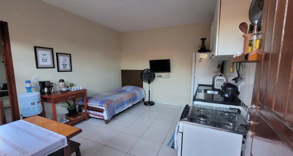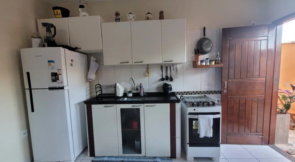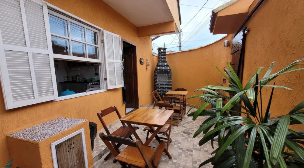 O bairro é tranquilo e familiar, com estacionamento gratuito na rua em frente à casa, que também é monitorada por câmeras de segurança.