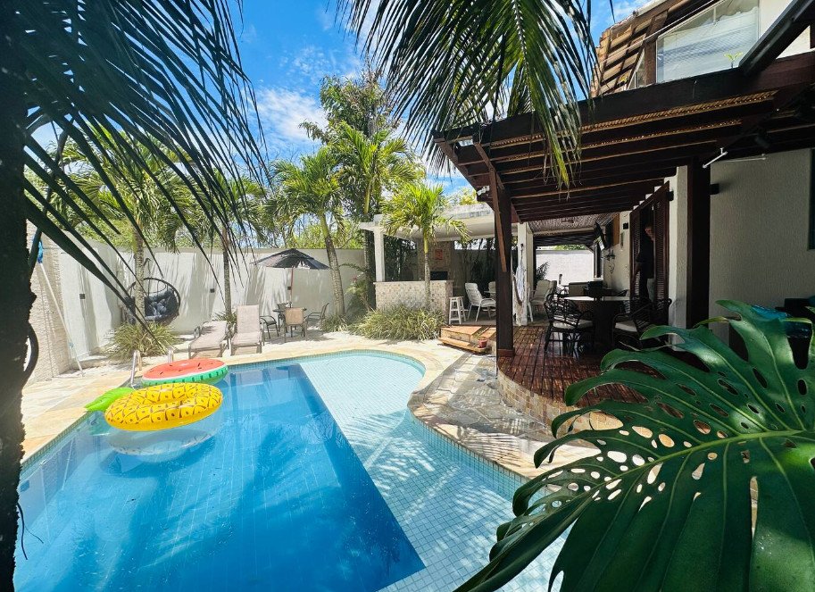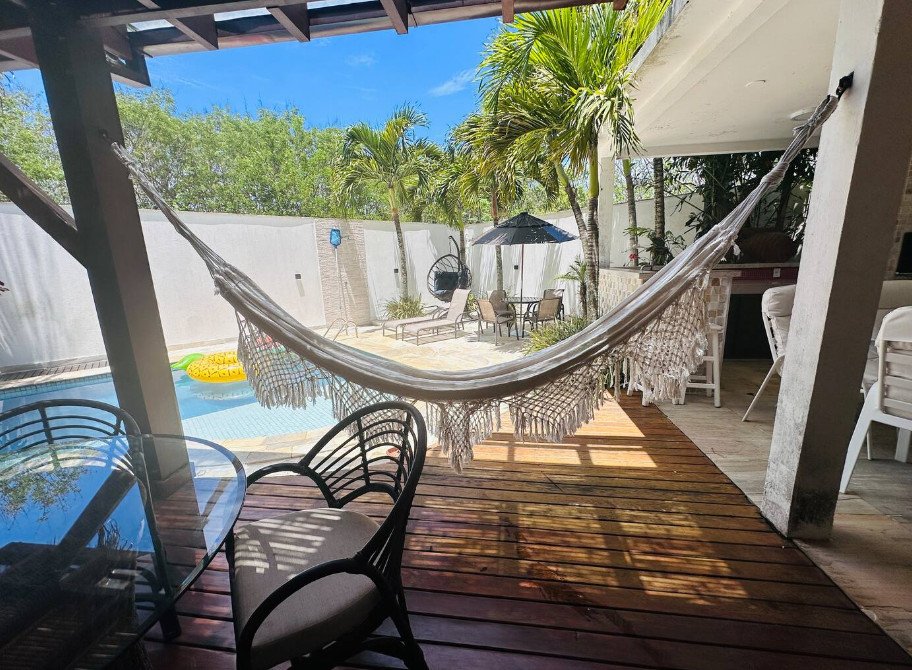 A piscina, sauna , sala de jogos, churrasqueira e área de lazer do condomínio estão localizados a poucos metros da casa.
