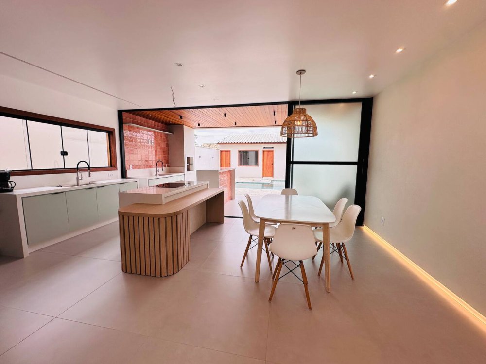 São quatro suítes, incluindo uma externa independente, ideais para quem busca privacidade e descanso. Com decoração moderna e ambientes espaçosos.