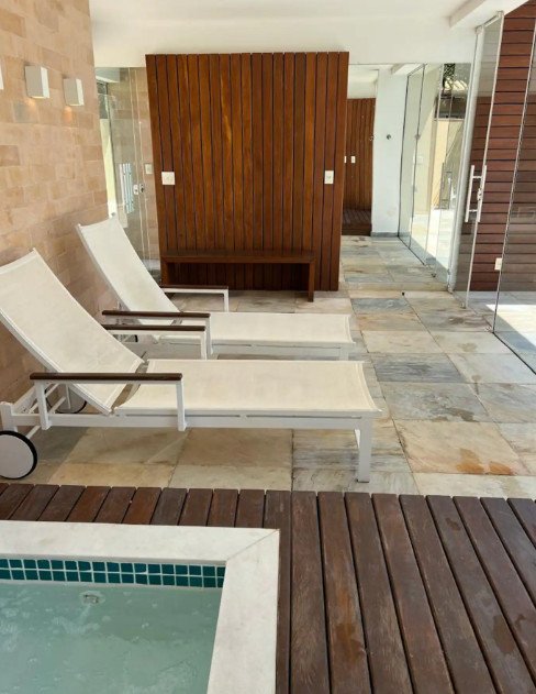 O som é permitido em volume moderado das 10 às 22h (não 'e permitido levar caixa de som para piscina e nem objetos de vidro).