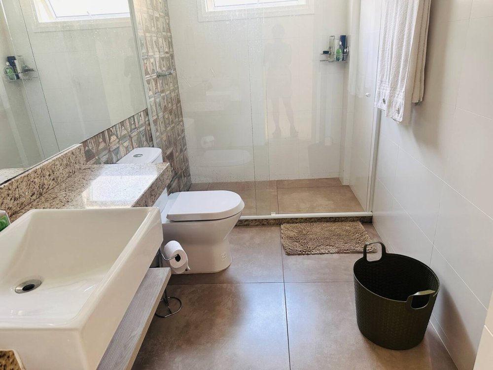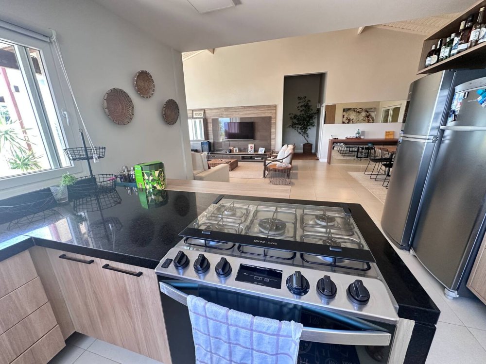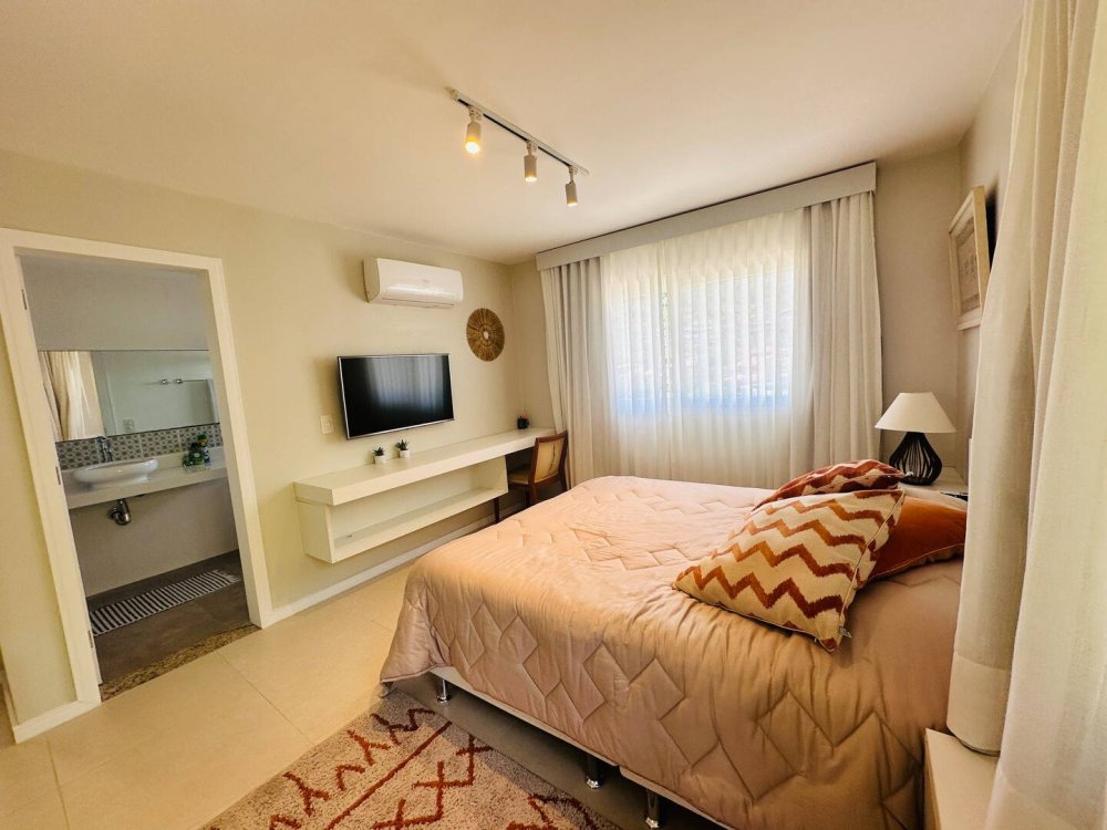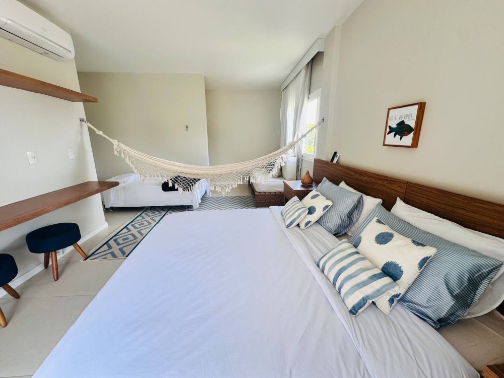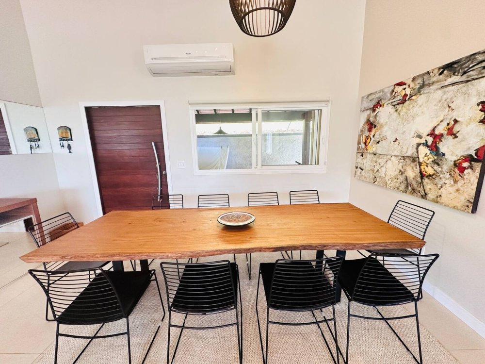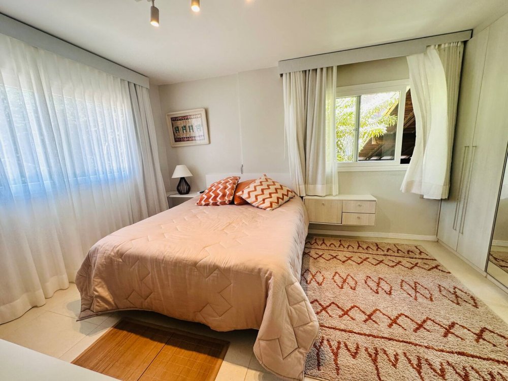 Com vagas privativas para 3 carros, mais vagas rotativas do condomínio, a casa garante tranquilidade e segurança para você e sua família. Além disso, há uma máquina de lavar roupas, e funcionários disponível durante toda a estadia