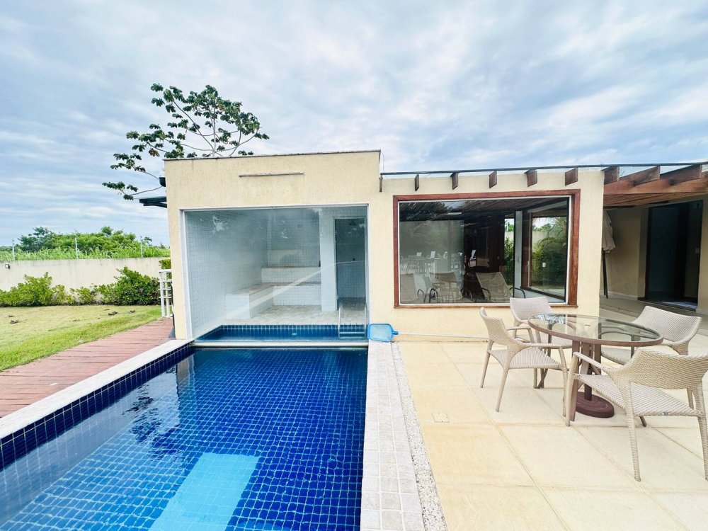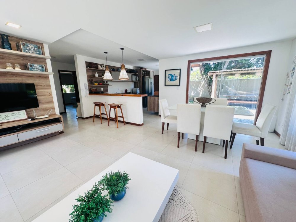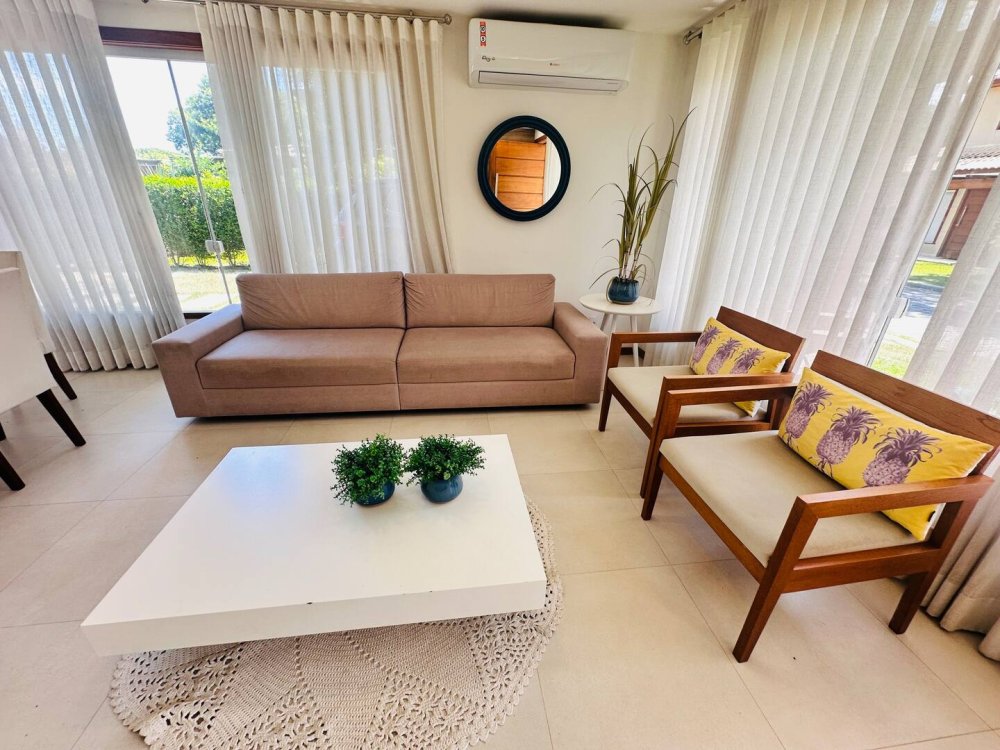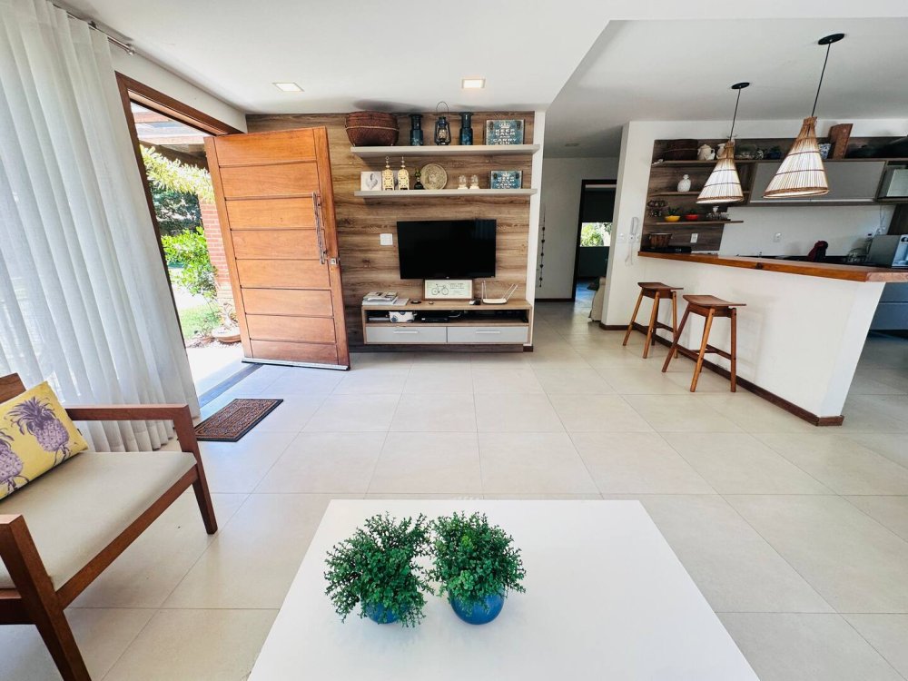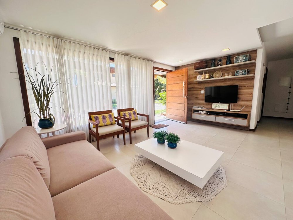 Desfrute do conforto e lazer nesta espaçosa casa em condomínio completo próximo ao mar. Com 4 suítes, todas climatizadas para até 10 hóspedes com muito conforto.Cozinha completa, wi-fi, sala de Tv c/ sky e ar, pátio com redes e balanços espalhados pela casa garantem momentos de descanso. Aproveite a estrutura do condomínio, com piscina, sauna, parquinho, academia, quadra poliesportiva, lago e área gourmet. Segurança com portaria 24h. Ideal para momentos inesquecíveis em família ou com amigos!