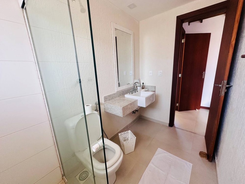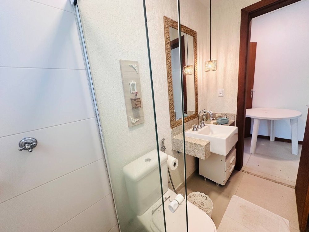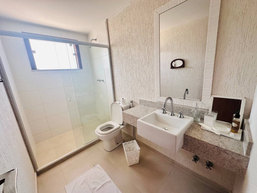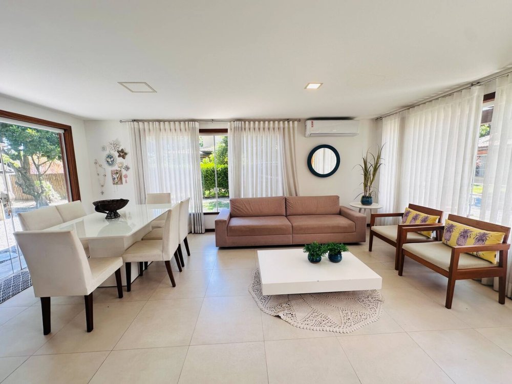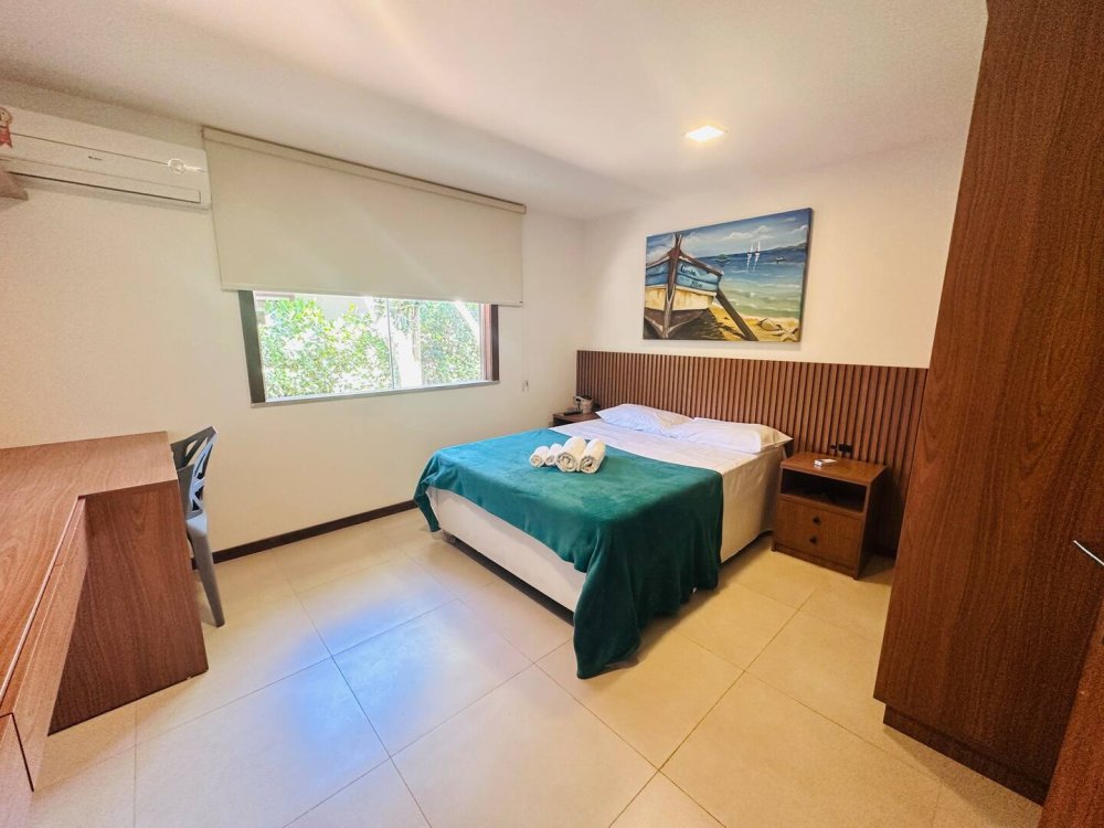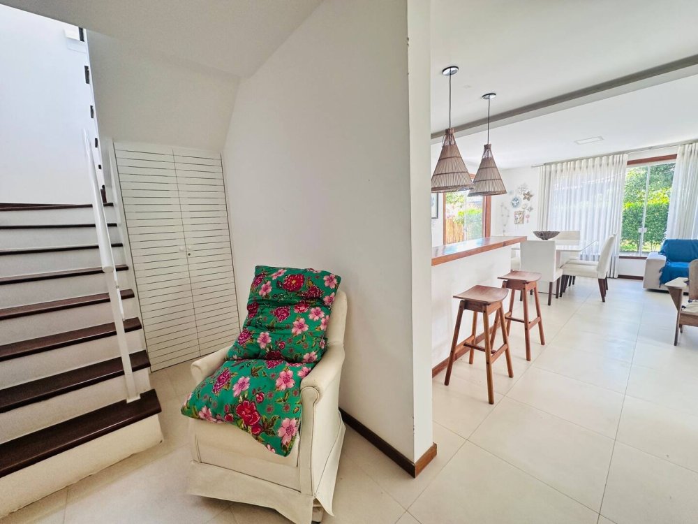 Desfrute do conforto e lazer nesta espaçosa casa em condomínio completo próximo ao mar. Com 4 suítes, todas climatizadas para até 10 hóspedes com muito conforto.Cozinha completa, wi-fi, sala de Tv c/ sky e ar, pátio com redes e balanços espalhados pela casa garantem momentos de descanso. Aproveite a estrutura do condomínio, com piscina, sauna, parquinho, academia, quadra poliesportiva, lago e área gourmet. Segurança com portaria 24h. Ideal para momentos inesquecíveis em família ou com amigos!