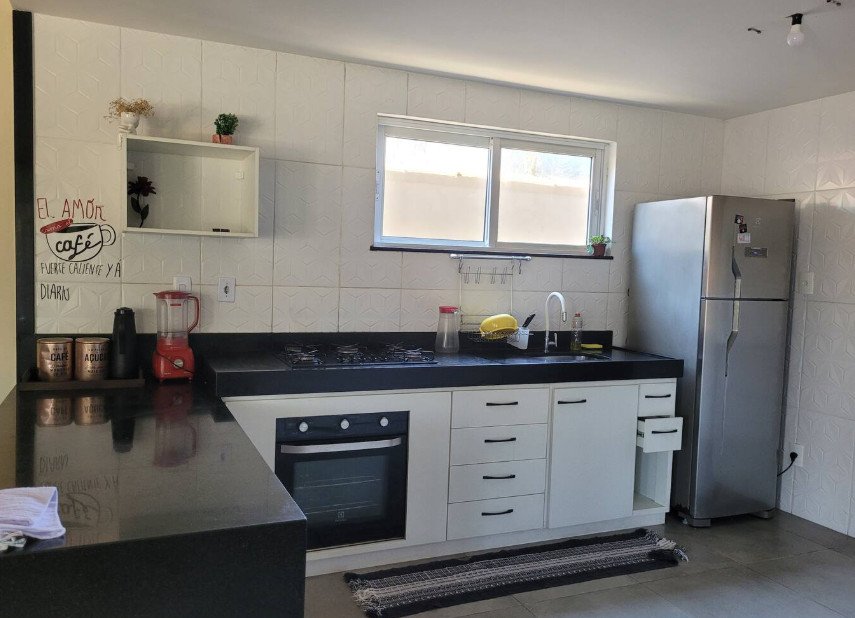 Casa 3 qtos, sendo 1 suite, sala, cozinha, banheiro, varanda, piscina. Em Manguinhos, próximo a lagoa de Geriba, a 200 metros do Centro Gastronômico Porto da Barra e a 10 minutos da praia de Geriba.