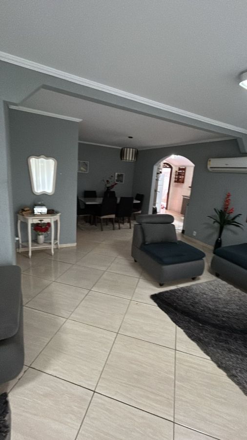 Sala ampla e climatizada, cozinha integrada com a copa, piscina grande, canil, pergolado no jardim super agradável.