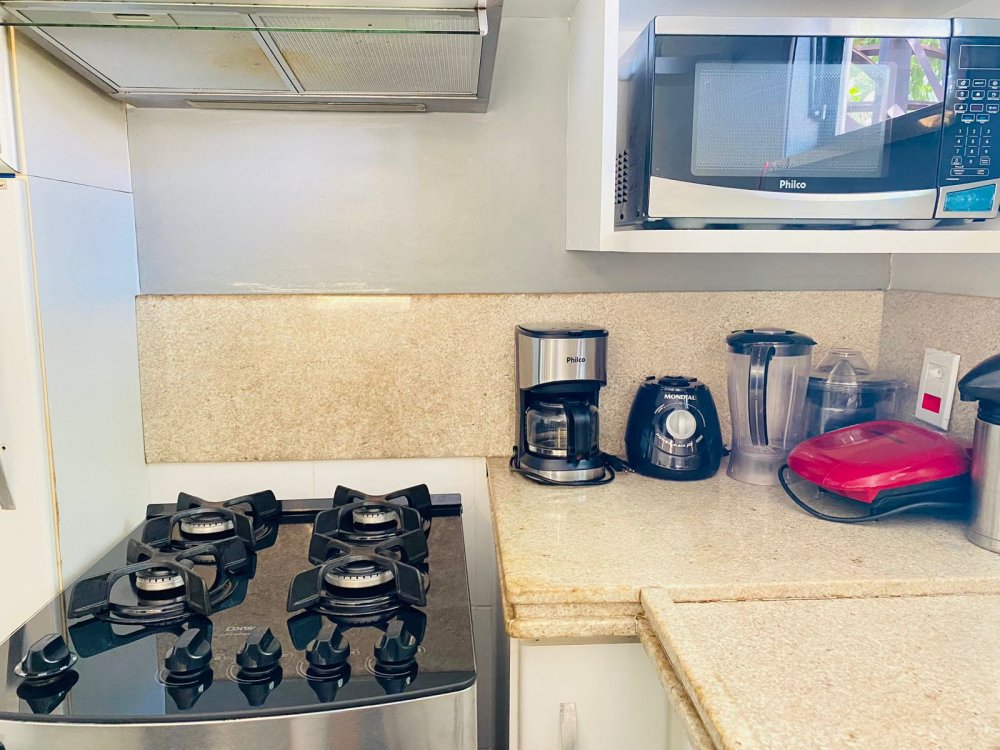Cozinha completa, com utensílios, eletrodomésticos novos e bem cuidados.