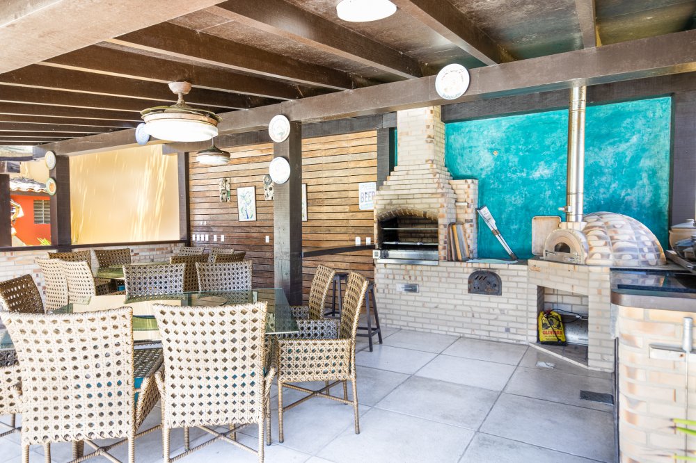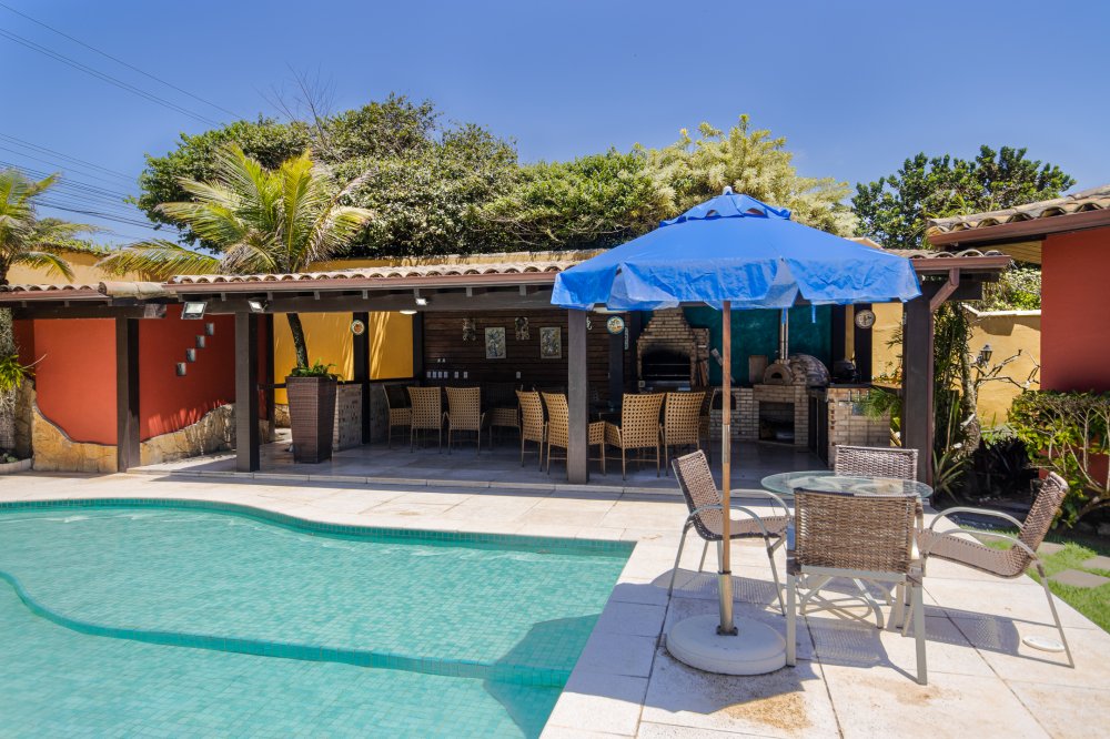 Casa super espaçosa com 7 suites todas com ares condicionados, sendo duas externas, excelente espaço gourmet com mesa de jantar e churrasqueira, piscina ampla e parquinho para as crianças.
