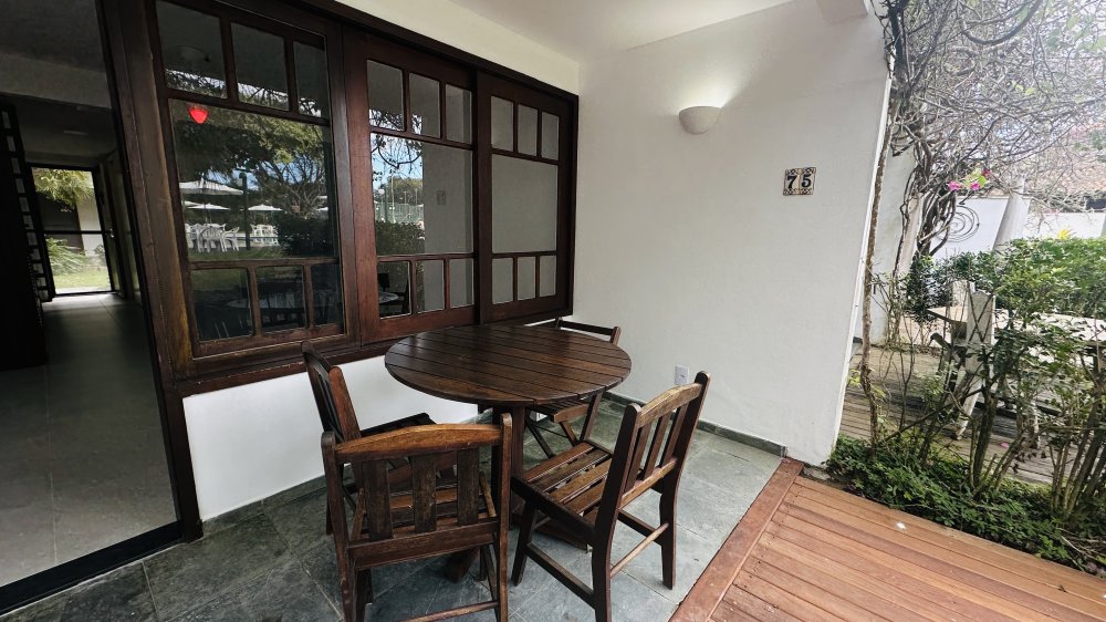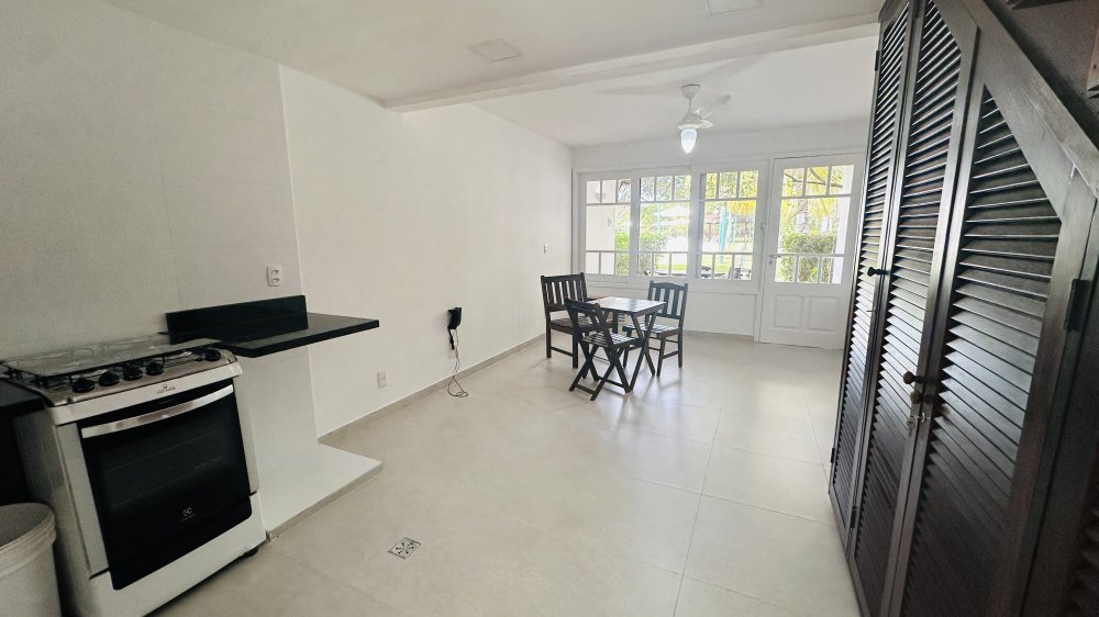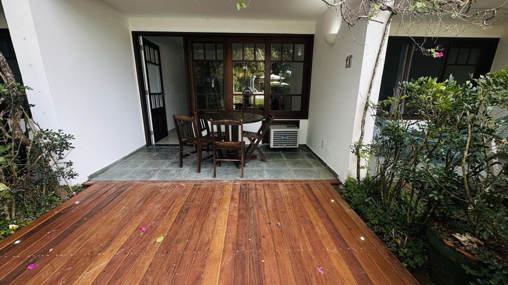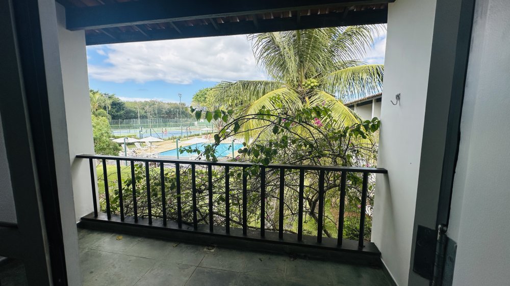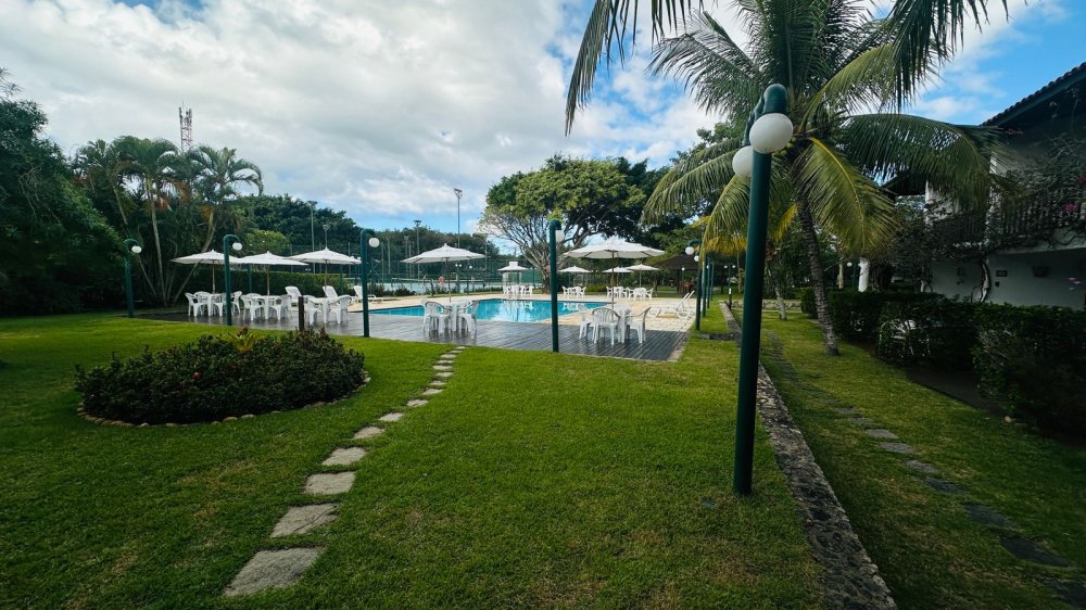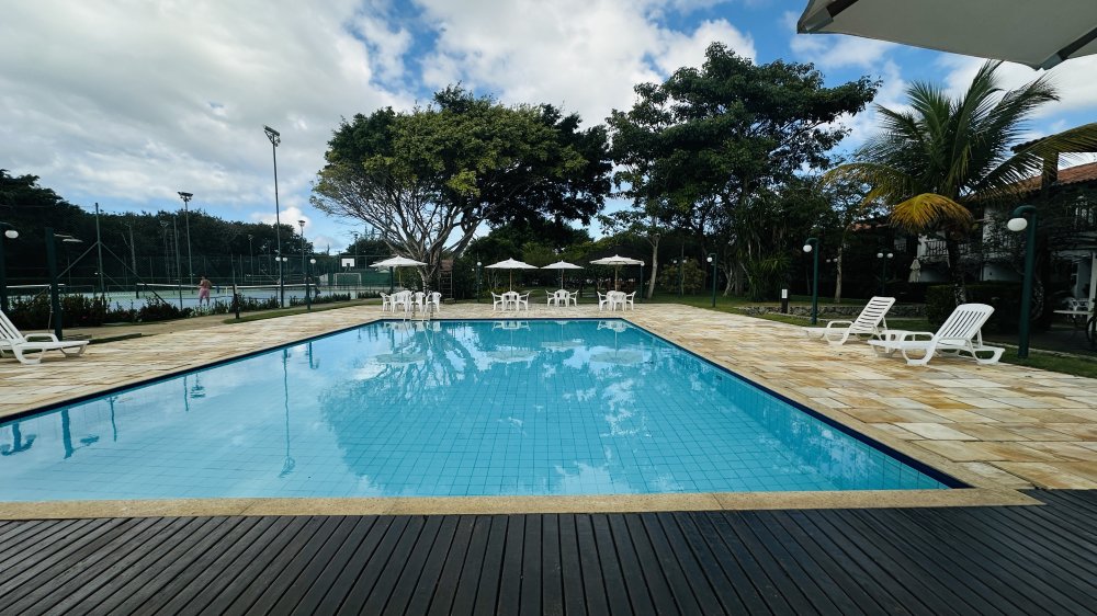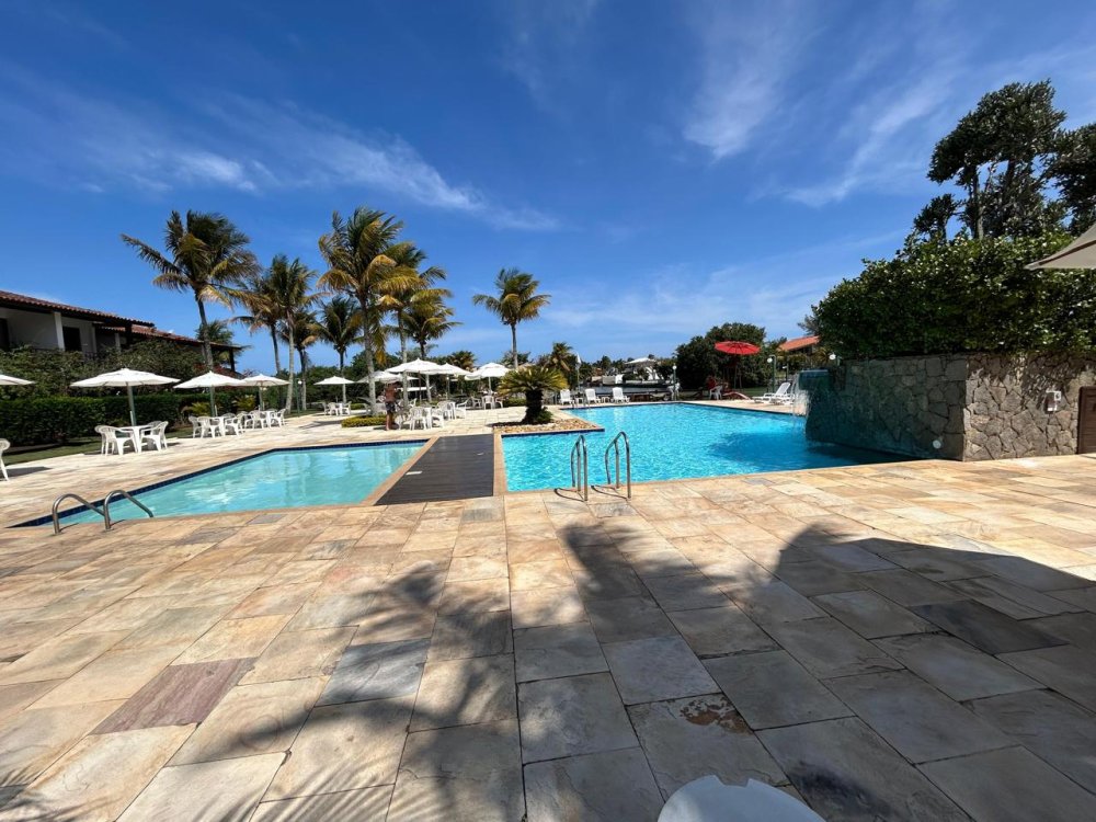 Casa com 2 quartos, varanda de frente para a piscina, semi mobiliado / ar-condicionado, ventiladores de teto, fogão, geladeira e mesa. Condomínio super estruturado: 2 piscinas, quadras poliesportivas, sauna, academia, lavanderia, sala de jogos, restaurante, estacionamento e saída com deck direto no canal — ideal para quem gosta de curtir a náutica com conforto e praticidade.