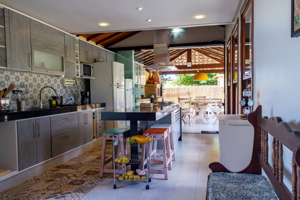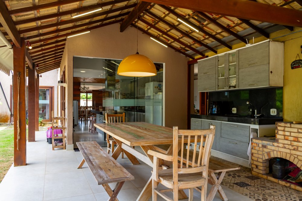 • Área gourmet completa, com churrasqueira e fogão a lenha, perfeita para receber amigos e familiares;