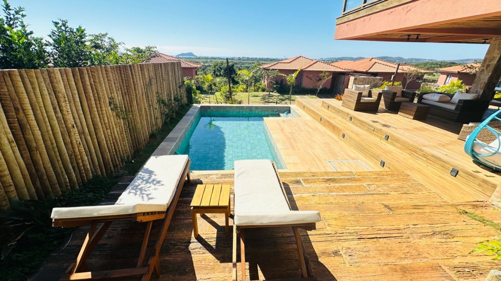 Casa sofisticada, alto padrão, com 4 suítes, area gourmet e piscina privativa, integrada à natureza com vista deslumbrante para montanhas e o mar. Localizada em condomínio exclusivo com piscina, sauna, campo de golfe, quadras de tênis, sede esportiva, brinquedoteca e até aeroporto. Conforto, lazer e luxo em um só lugar.