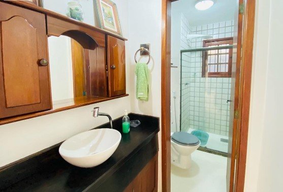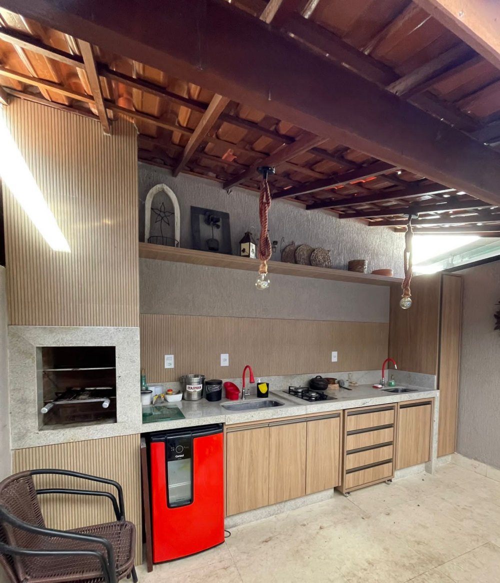 No térreo temos um banheiro, sala de tv com internet, cozinha e espaço gourmet recém reformado.