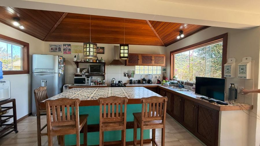 Casa confortável, aconchegante e estilosa, em localização tranquila e com uma vista incrivel para uma das praias mais belas de Buzios, ponta do Pai Vitório. Garagem 3 carros, quintal com arvores frutiferas, area de churrasqueira, piscina com vista para o mar. Casa ampla, arejada, funcional. Cozinha com todos os utensilios.