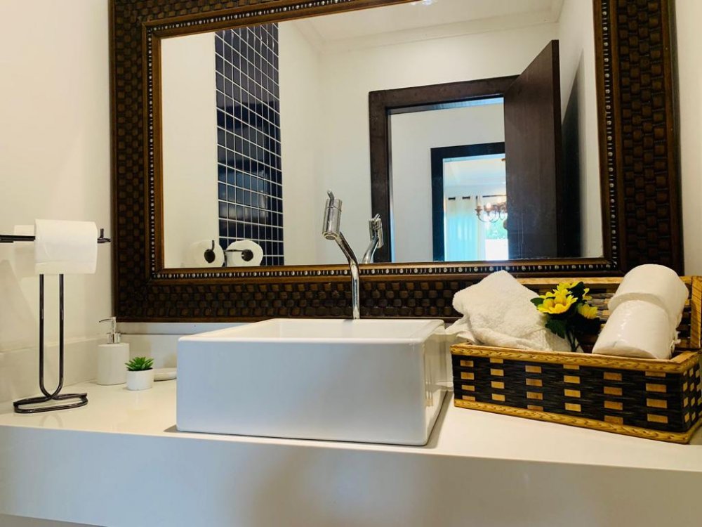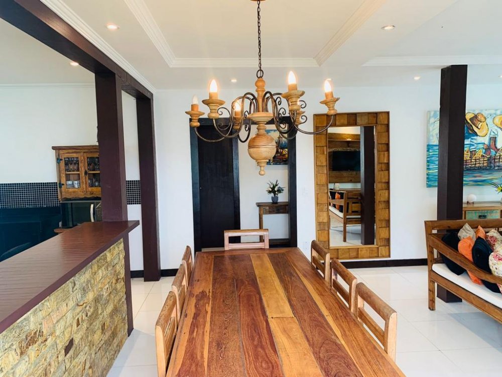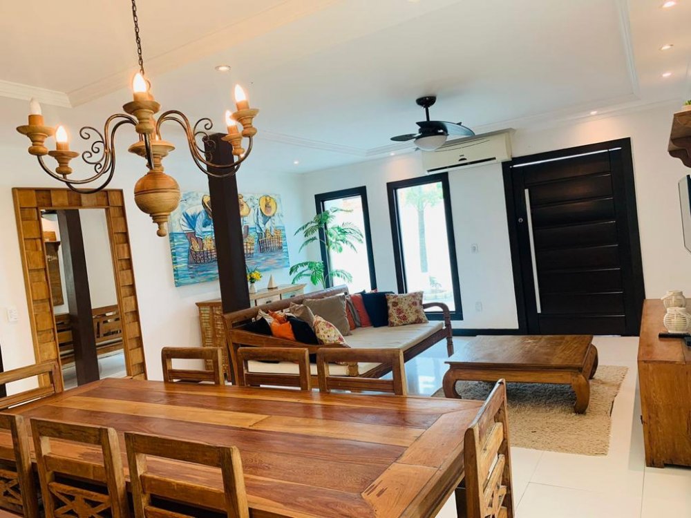 Casa ampla nova e toda climatizada, com moveis de demolição novos , cozinha americana completa e todos os utensílios domésticos, churrasqueira, PISCINA, HIDROMASSAGEM ,lavanderia, sala ampla e duas suítes com ar condicionado e ventiladores de teto. Espaço para ate 4 carros. A poucos minutos de carro de Geribá (5 minutos), Manguinhos e principais comércios do bairro (7minutos) e hospital da cidade ( 1 minutos).