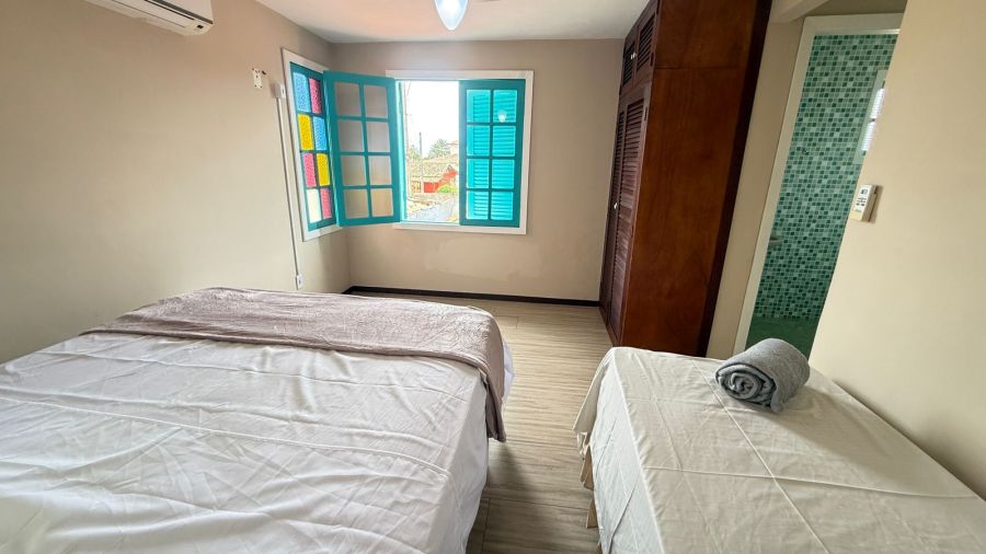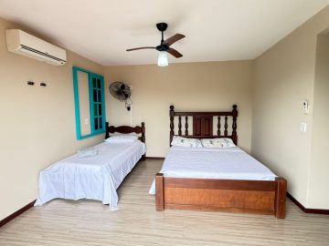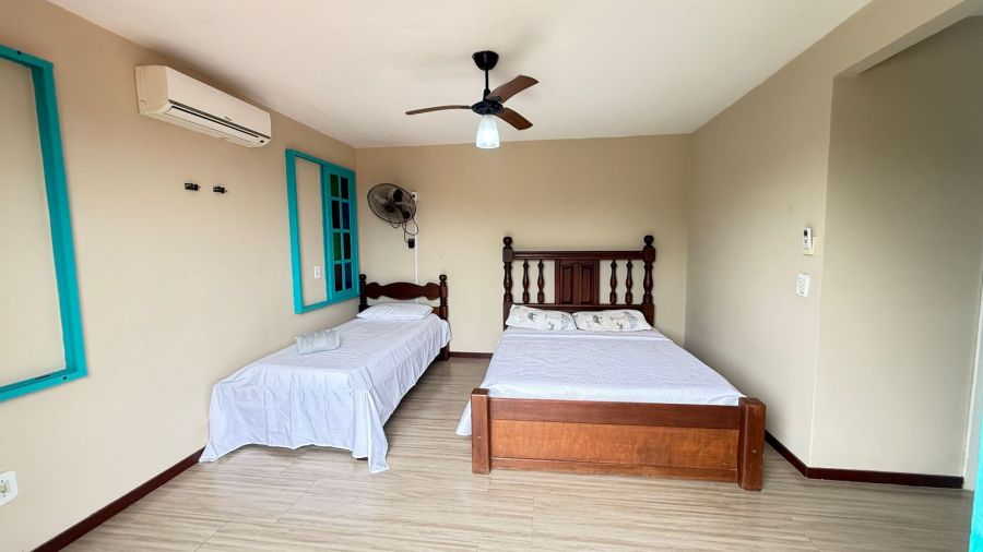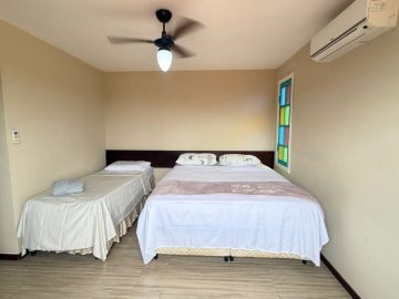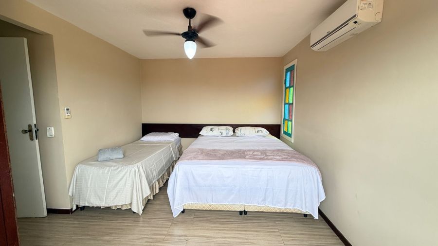 São quatro quartos, 2 suites, com ar condicinado e ventilador de teto!