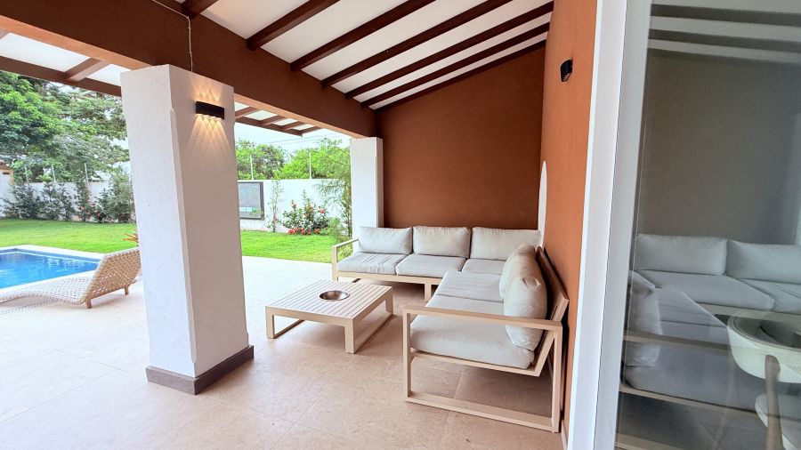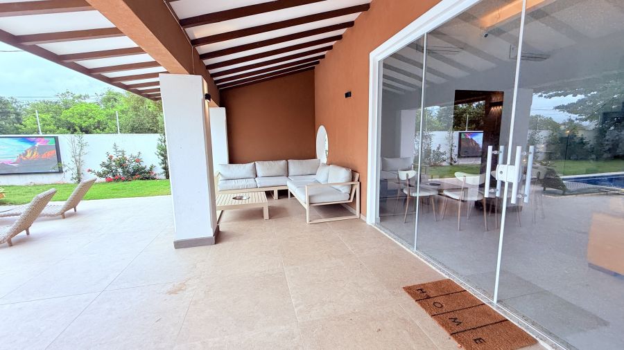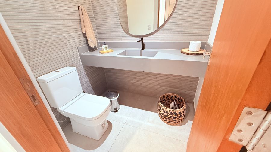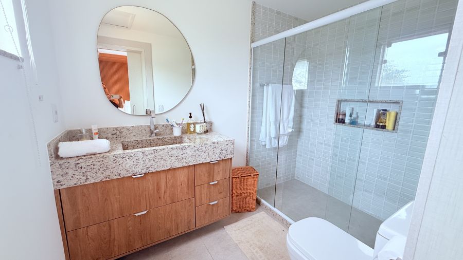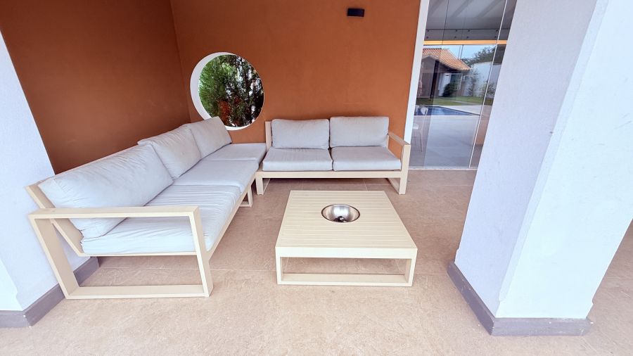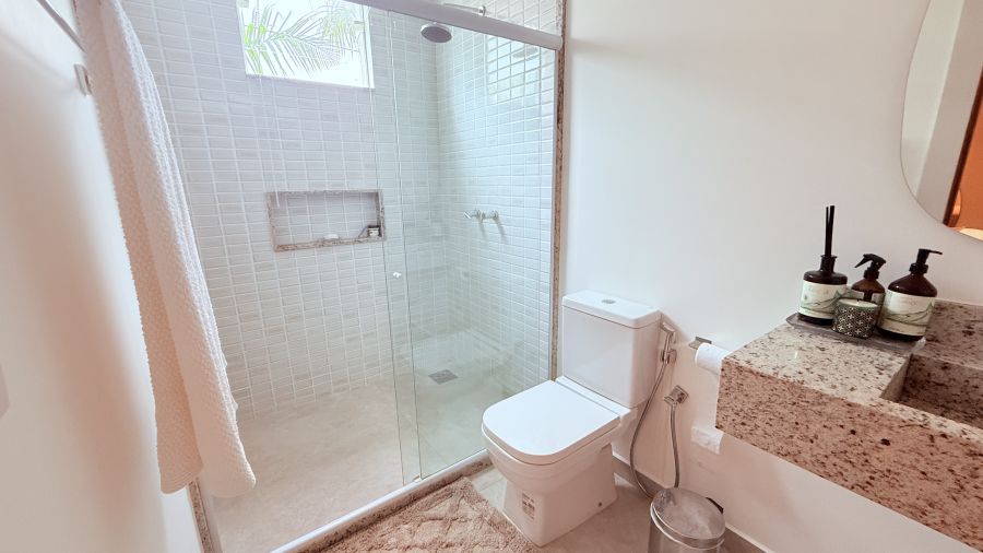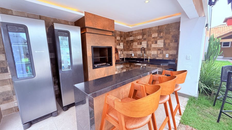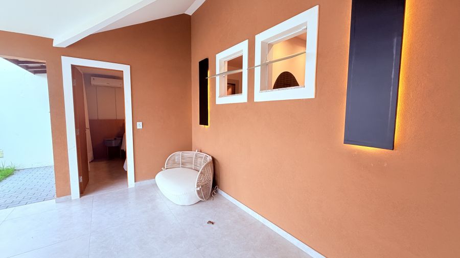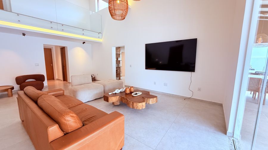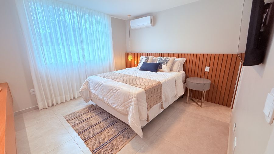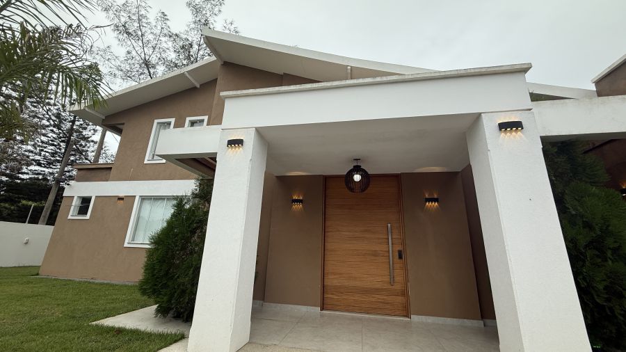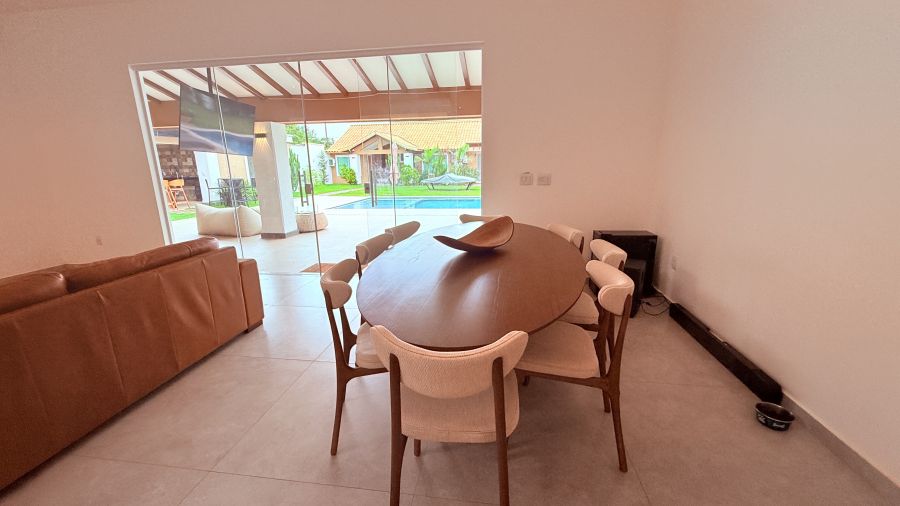 Esta elegante acomodação é ideal para grupos de até 16 pessoas. Localizada a apenas 5 minutos da praia, a casa oferece 6 suítes com ar condicionado, roupas de cama e banho , sala de TV, cozinha, piscina e área gourmet. Além disso, possui sistema de segurança 24 horas e será alugada com serviço de arrumadeira. P/ momentos de lazer, a casa oferece bike ergométrica, futmesa, piscina c/ aquecedor, telão, sauna e hidro. O estacionamento pode acomodar até 3 carros e a rua é tranquila , monitorada.