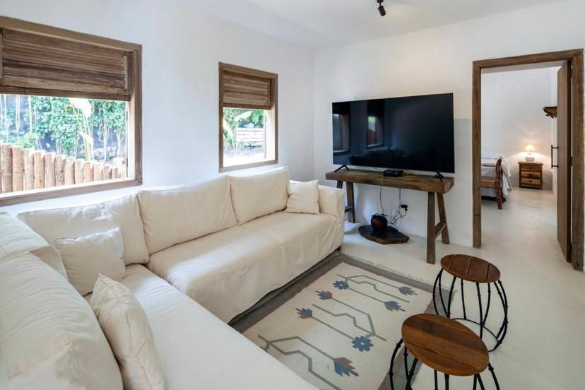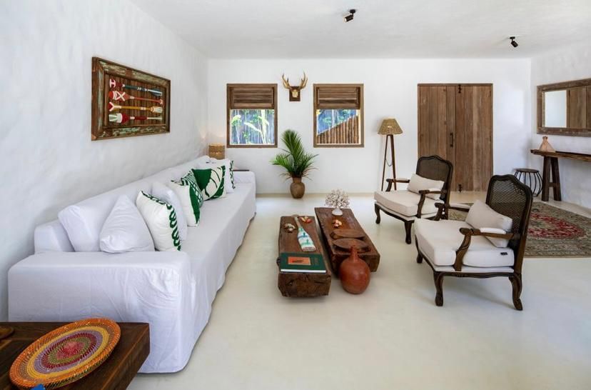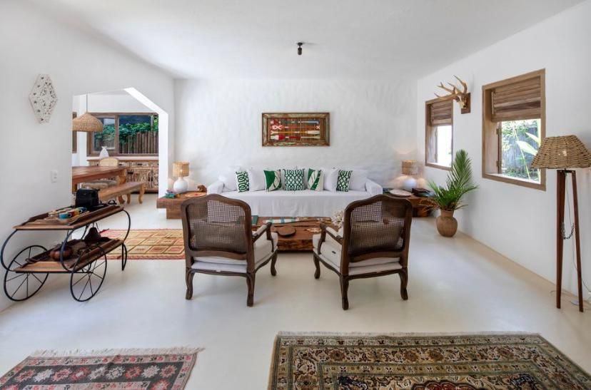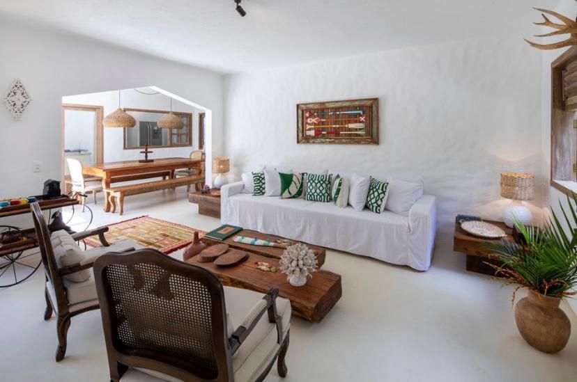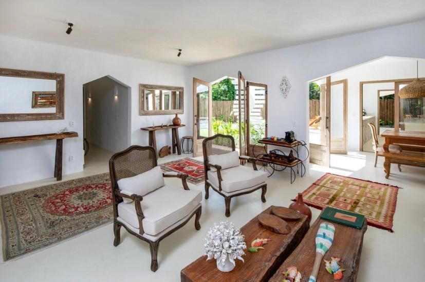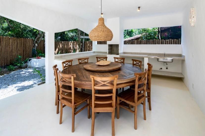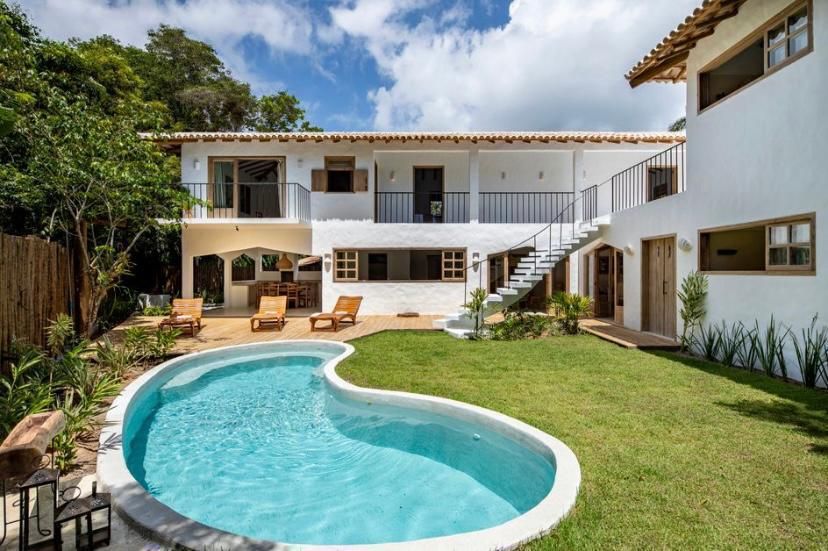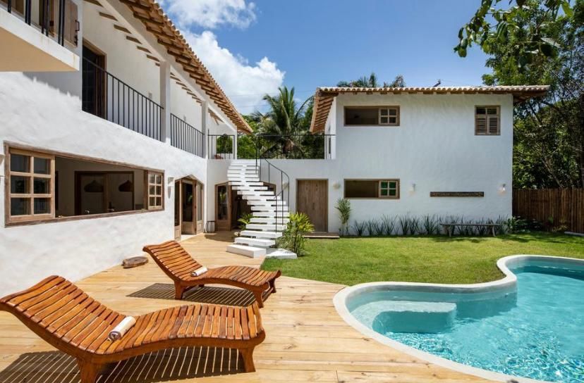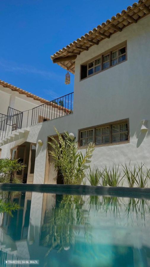 Belíssima casa em estilo Greco-Baiano, no coração de Trancoso, assinada por renomado escritório de arquitetura. Composta por 5 suítes completamente independentes, sala de estar, sala de jantar, sala de televisão, cozinha ampla e moderna, área gourmet com churrasqueira e mesa circular, lavanderia, piscina em Cristal-Pool em formato orgânico e banheiro de piscina.