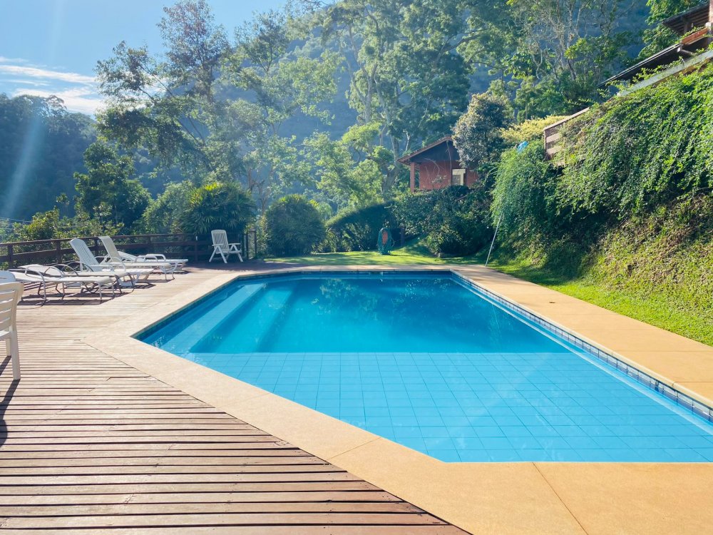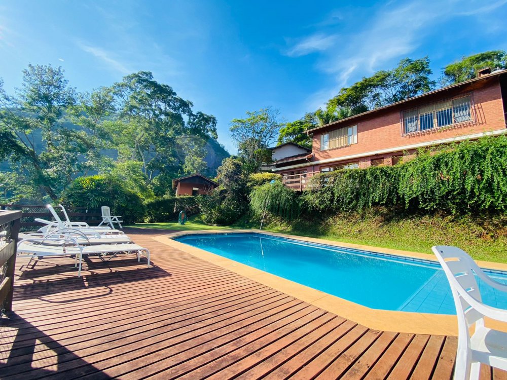 Casa maravilhosa em Itaipava, com piscina, muito espaço verde, churrasqueira e sauna seca, dividida em dois prédios sendo a primeira construção com cozinha e uma suítes no primeiro andar e sala de tv, lavabo, varanda, um quarto e duas suítes no andar superior. No prédio novo temos duas suíte com varanda com vista pra serra e pra piscina. Garagem para ate 6 carros, mesa de toto e lindo gramado super bem cuidados. Estamos bem no alto, próximos a Itaipava tenis club, a uns 15 minutos do centro.