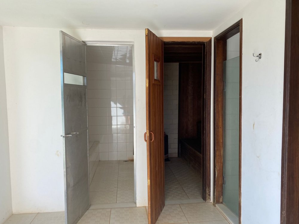 9- A sauna a vapor está em manutenção e a seca funciona com uso de lenha