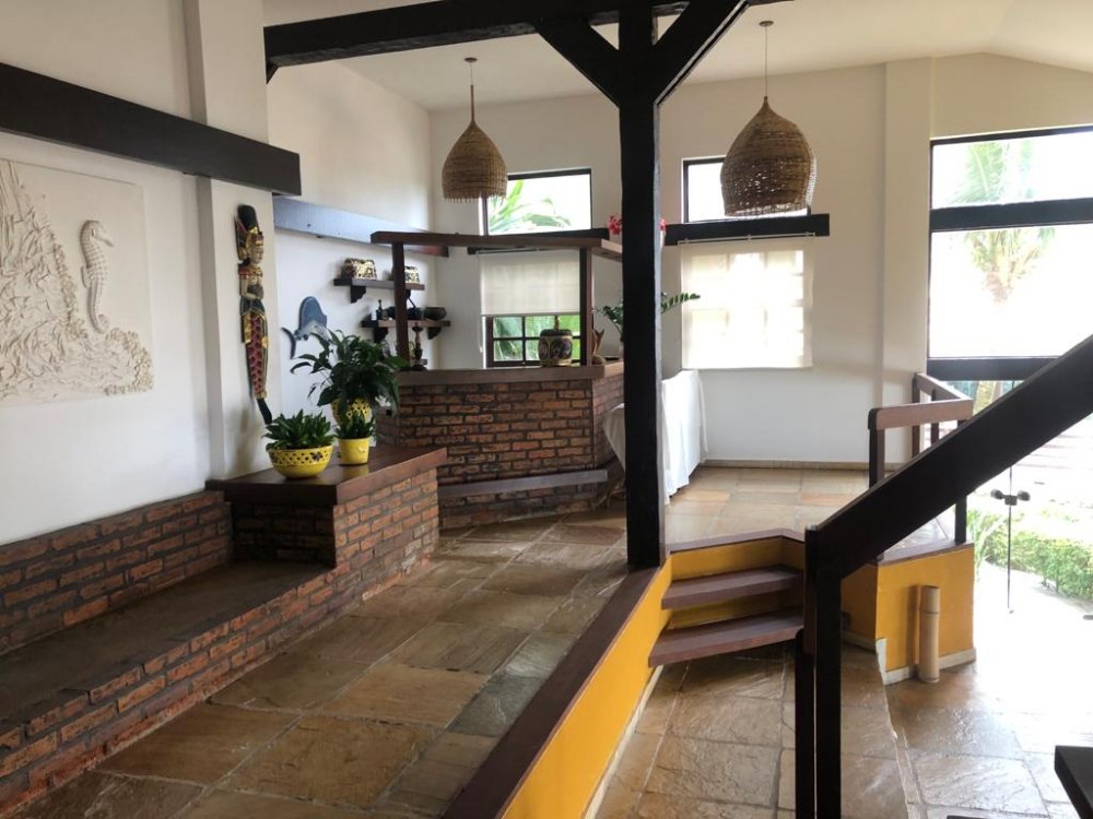Casa em 3 pavimentos sendo a entrada principal pelo piso superior com sala, lavabo, cozinha e varanda com churrasqueira, quartos, banheiro e suítes no segundo pavimento e sala de jogos, lavabo, sala de estar e bar no pavimento inferior com linda vista para praia de Geribá de todos os quartos, varanda e sala de jogo.