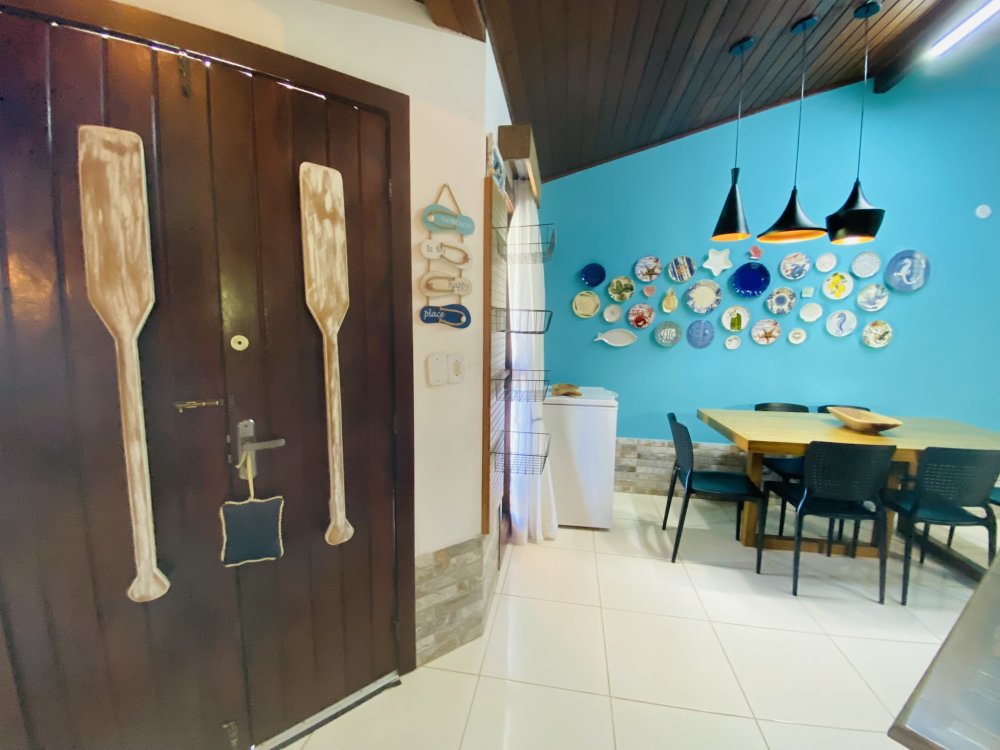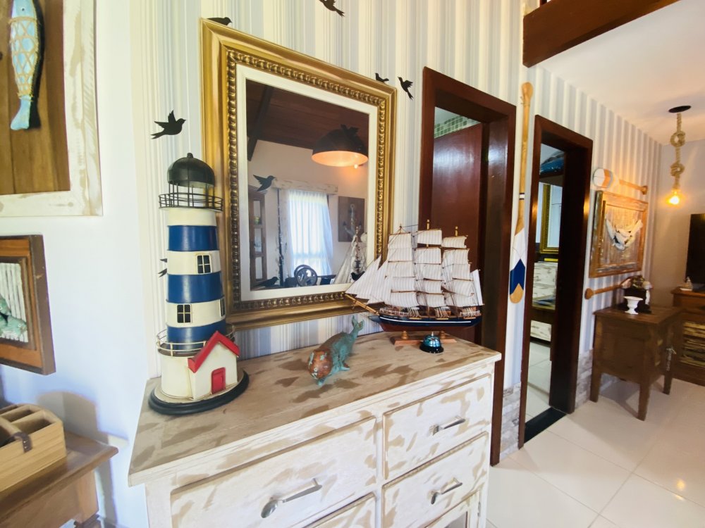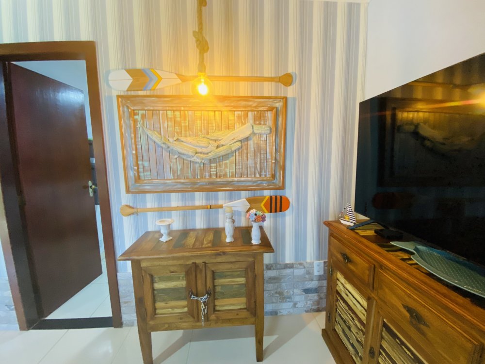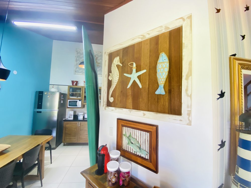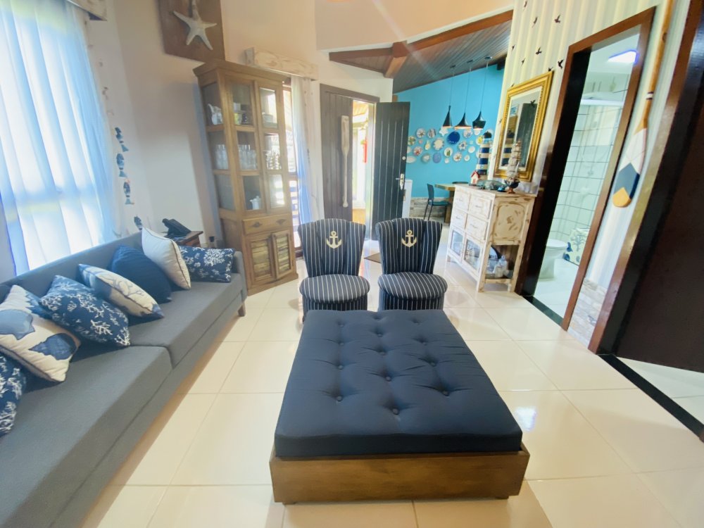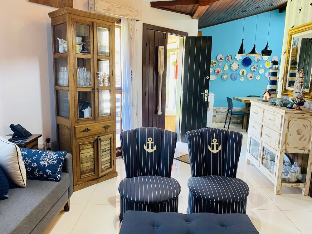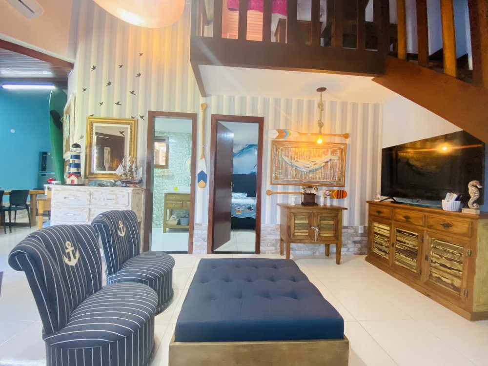Casa toda em decoração náutica, super organizada e bem cuidada, em condomínio familiar próximo a praia da Marina e do empreendimento Arete. Construção em dois pavimentos sendo o andar superior com uma linda suíte e o inferior com quarto e camas de solteiro, sala com Smartv nova, copa, cozinha completa e área de serviço. Lindo gramado e varanda na frente da casa. Estamos a 10 minutos de Geribá e 20 minutos das Ruas das Pedras. Viva momentos inesquecíveis neste lugar único e ideal para famílias.
