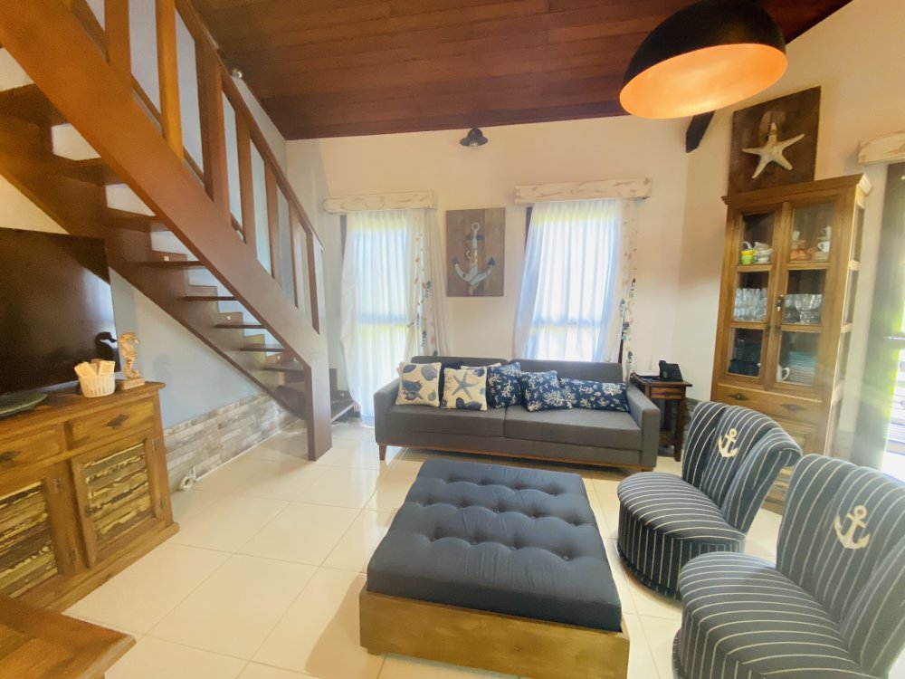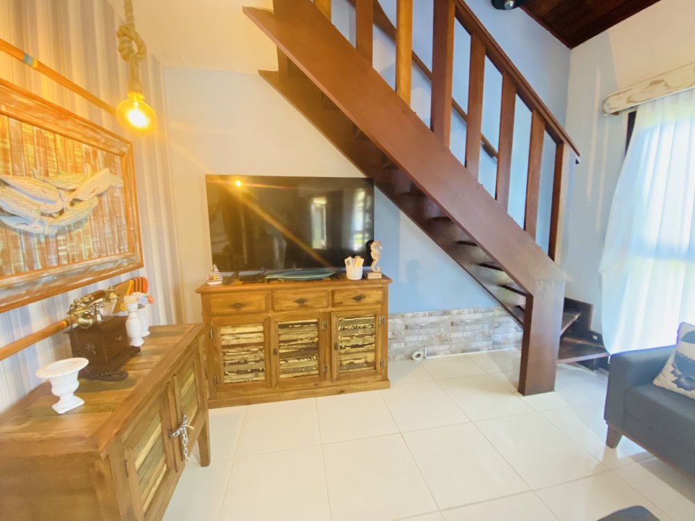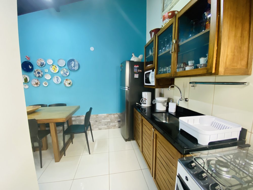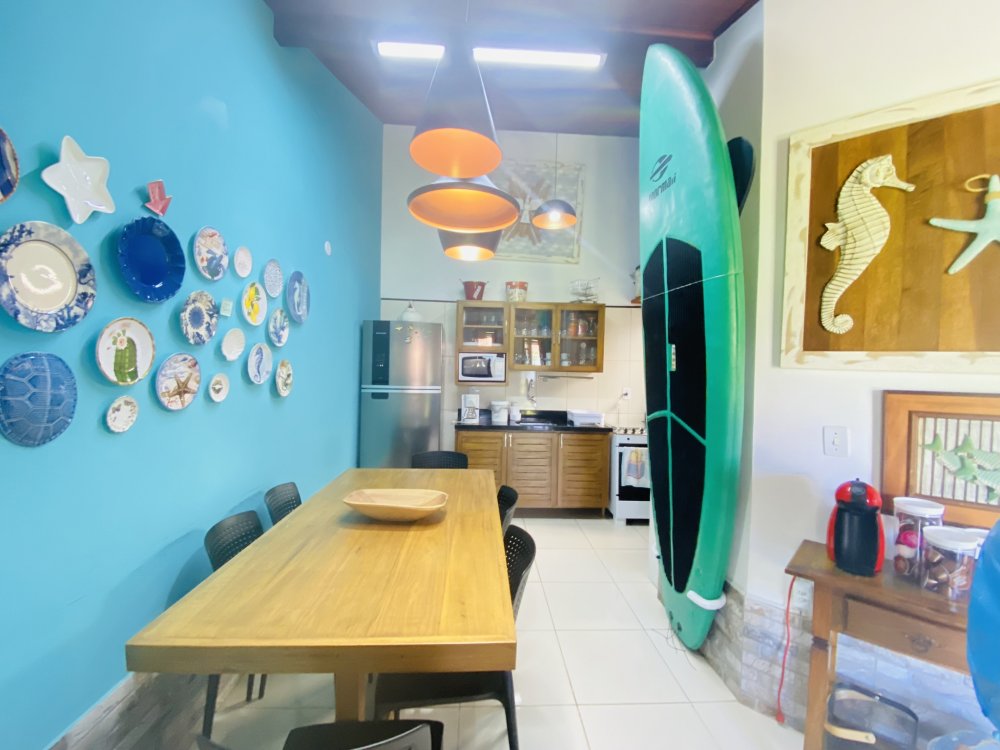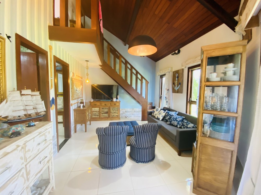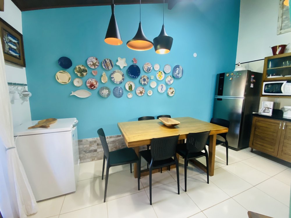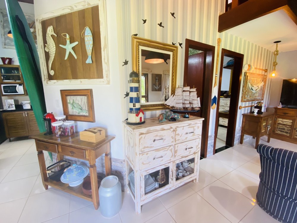 Casa toda em decoração náutica, super organizada e bem cuidada, em condomínio familiar próximo a praia da Marina e do empreendimento Arete. Construção em dois pavimentos sendo o andar superior com uma linda suíte e o inferior com quarto e camas de solteiro, sala com Smartv nova, copa, cozinha completa e área de serviço. Lindo gramado e varanda na frente da casa. Estamos a 10 minutos de Geribá e 20 minutos das Ruas das Pedras. Viva momentos inesquecíveis neste lugar único e ideal para famílias.