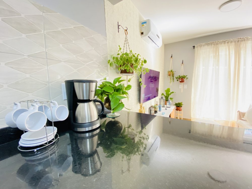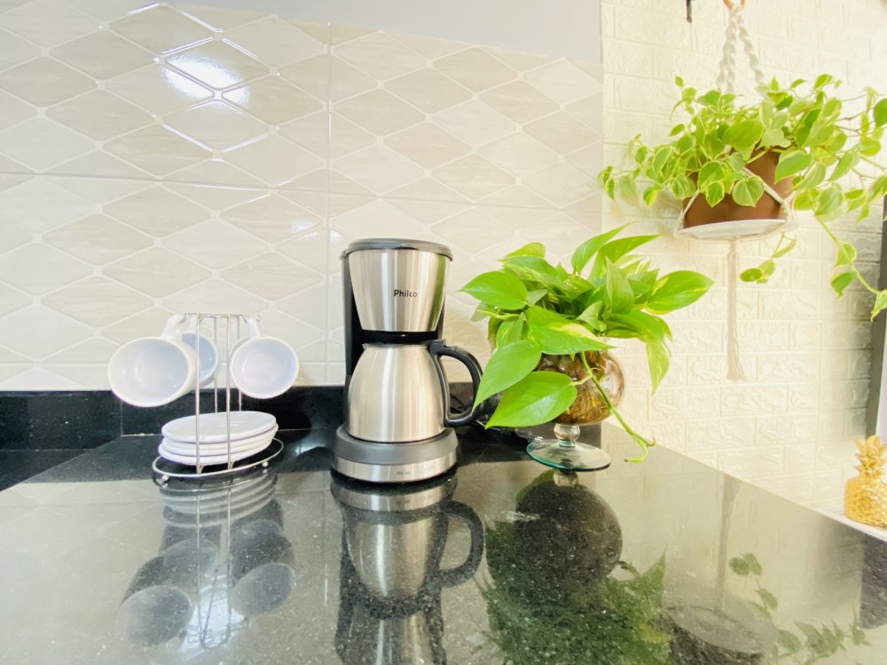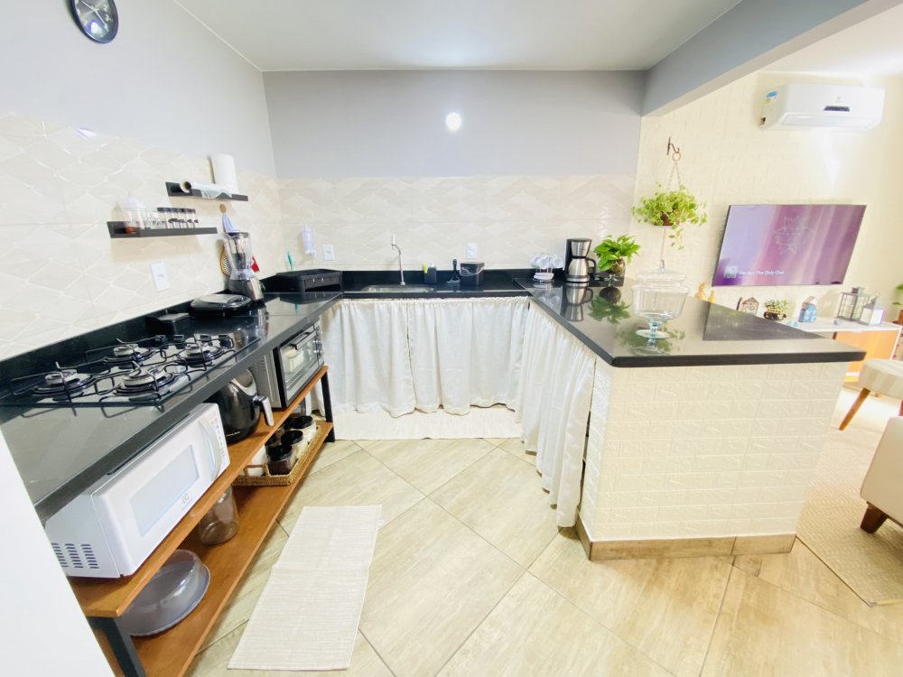 * Cozinha americana completa com todos os utensilios necessarios, microondas, cafeteira eletrica, airfry, sanduicheira, liquidificador geladeira, coocktop e forno eletrico.