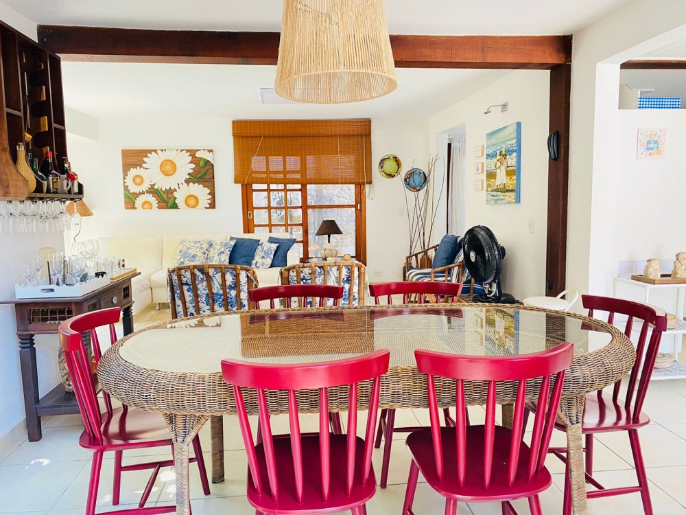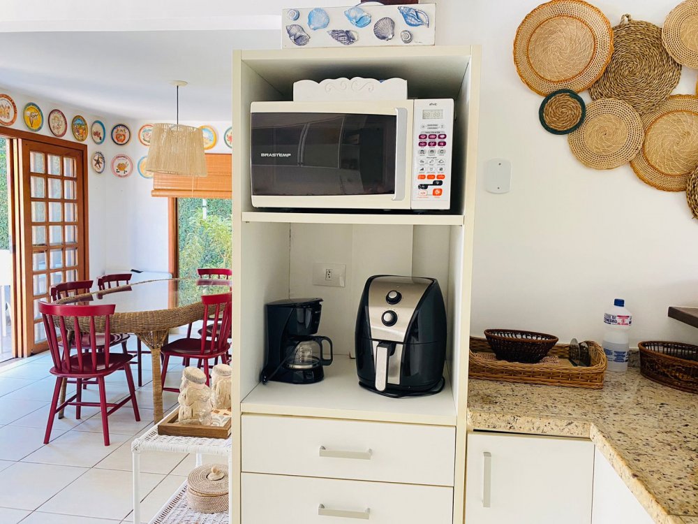 Casa de 2 pavimentos, 3 quartos e 1 suíte, todos c ar condicionado e ventiladores. Condomínio muito bem localizado, arborizado e próximo ao pórtico. Com sala de jogos,parquinho, quadra de tênis,lanchonete, piscina e a somente passos da praia de Manguinhos. Temos churrasqueira privada no quintal da casa, lavanderia, cozinha completa e Wi-Fi, perto de supermercados, restaurantes, banco e das praias de Manguinhos e Geriba! Venha curtir Búzios c/ praticidade, conforto e segurança.