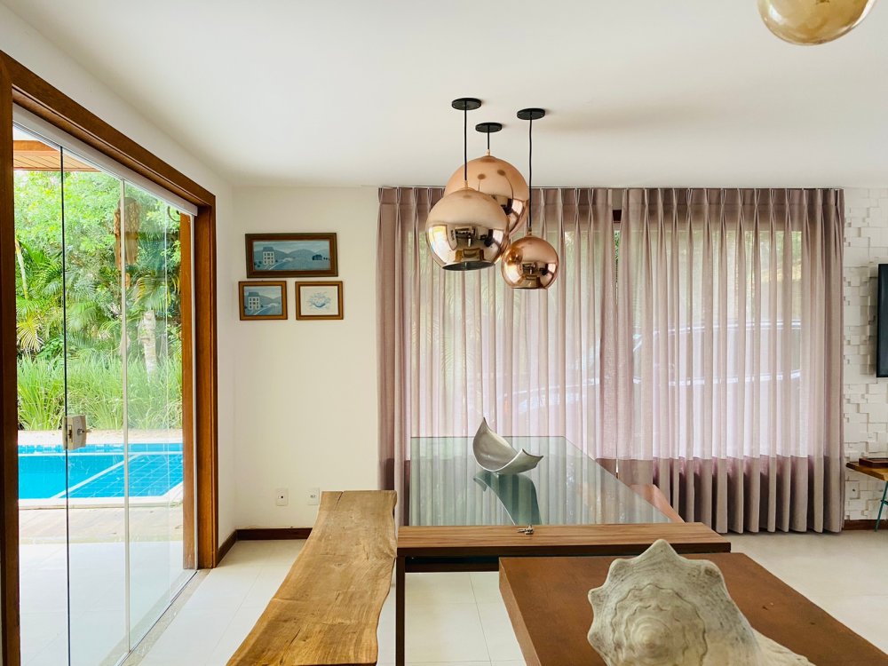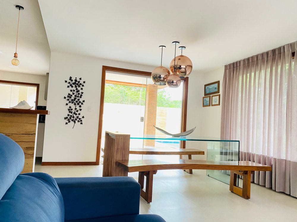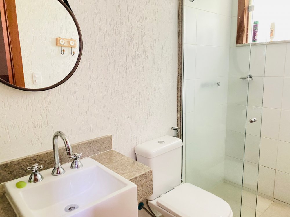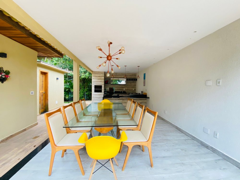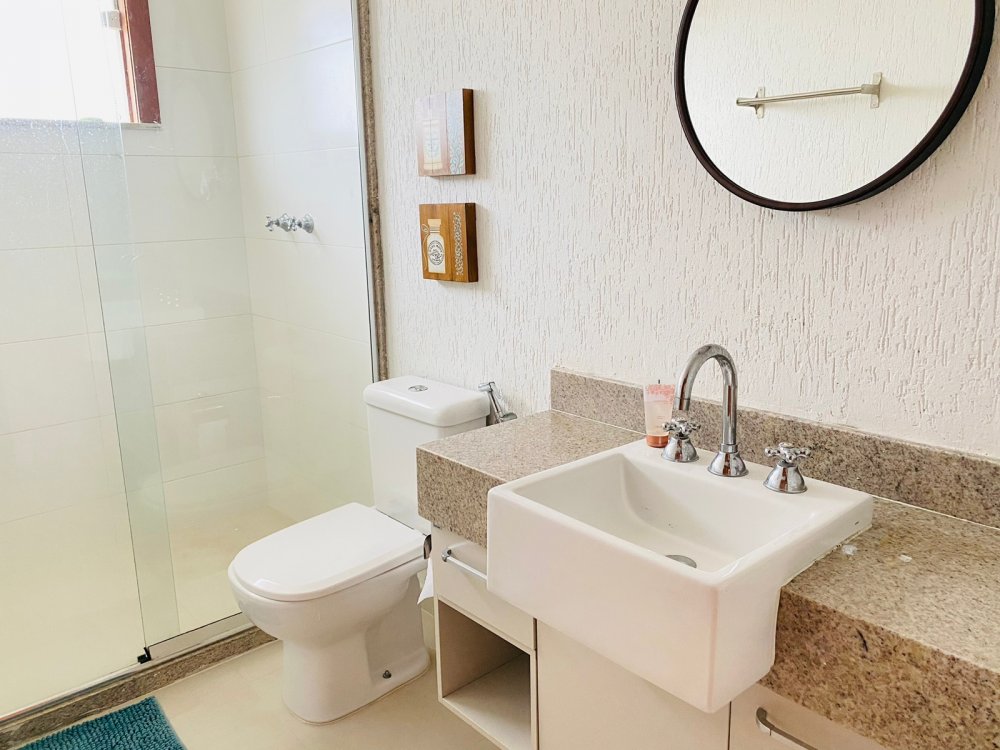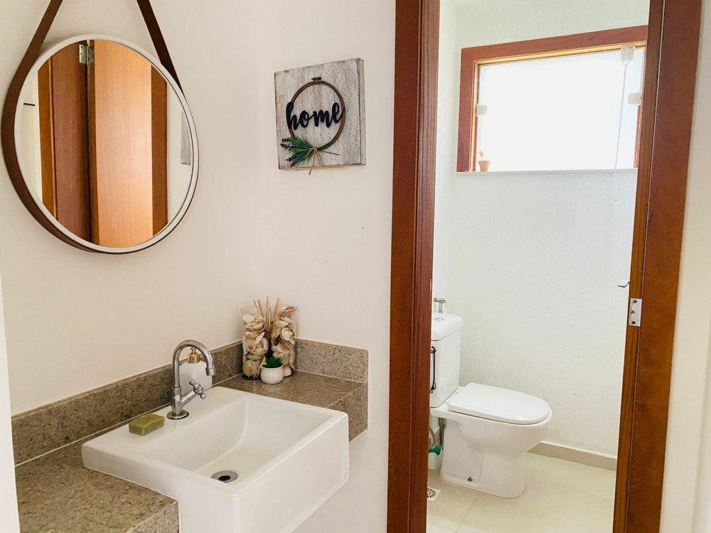 Lindíssima casa, muito bem cuidada, toda equipada, com 4 suites, sendo duas no térreo e duas no segundo pavimento, todas com enxoval completo e ares condicionados, cozinha completa com todos utensílios necessários, cook top, forno elétrico, panela de arroz, liquidificador, microondas, geladeira , airfry e louças. Area gourmet junto a piscina com churrasqueira e mesa de jantar. Lavanderia, duas vagas na garagem e ótima estrutura do condomínio com piscina ,sauna e um lindo lago com peixinhos